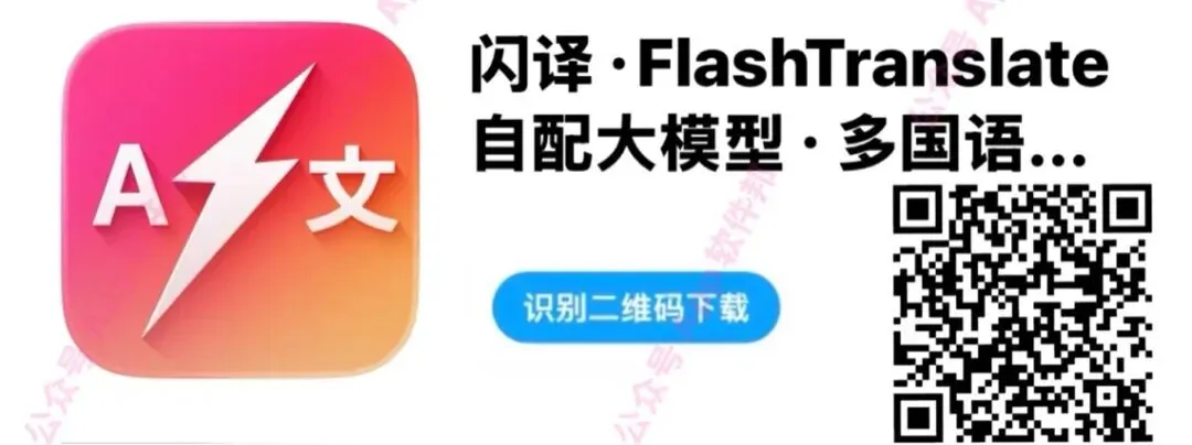 今天分享的是一款叫闪译(FlashTranslate)的应用,自己配API Key,支持GPT-4、DeepSeek这些主流模型,翻译质量完全可控。最喜欢它的五大风格——标准、口语、网络热梗、商务、学术,随意切换,告别生硬翻译腔。还能自定义提示词,让AI按我的习惯来。支持17种语言,卡片式UI流畅得像闪电。目前这款应用正在限免中,手慢无。