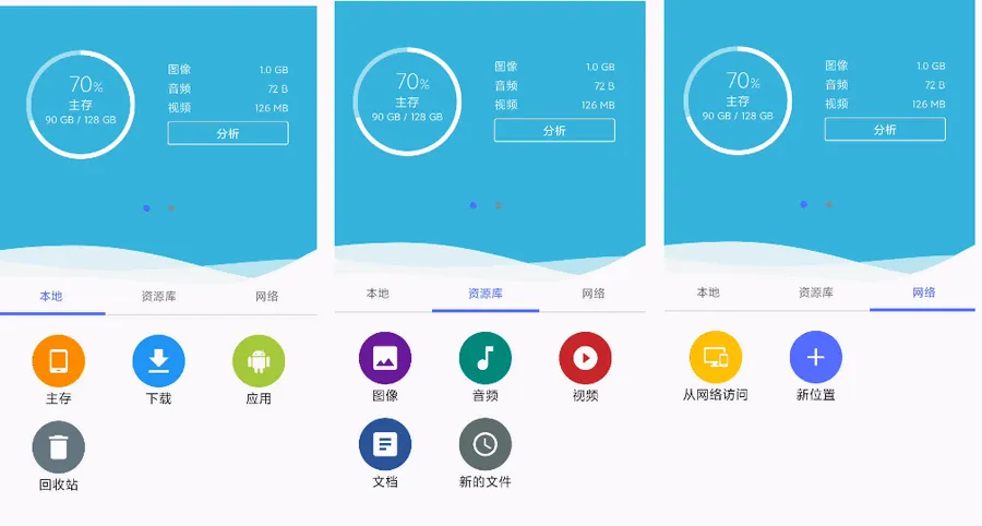 这是一款开源文件管理器,适合安卓系统手机使用,主要分三个版块:本地、资源库、网络。这几个版块的功能都超级实用,直接一步到位能精准定位到文件,可以大幅提高用户的使用效率。