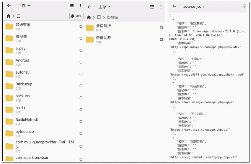 很多人安装软件后,找不到根目录,举个例子吧,比如安装了影视猫,想要将站源存到安装根目录下,利用这款软件就可以直接操作,它甚至还支持直接编辑json文件。