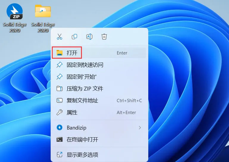 27、回到桌面,右键桌面上的【Solid Edge 2020软件图标】,点击【打开】