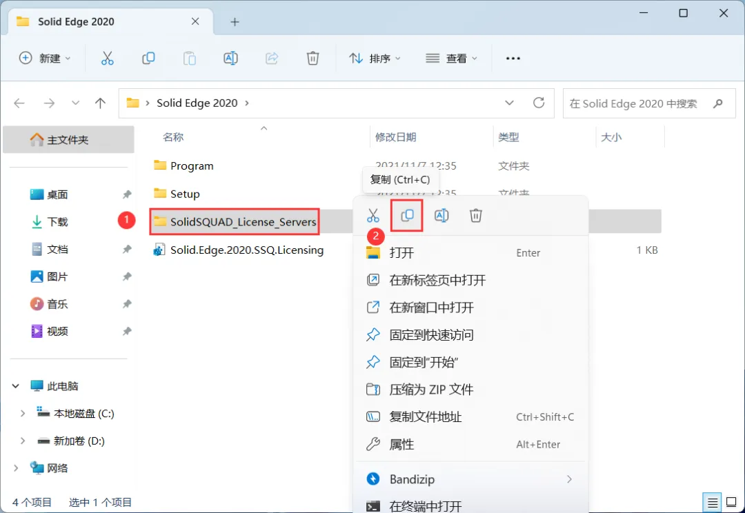 3、找到【SolidSQUAD_License_Servers】文件夹,再右键点击【复制按钮】