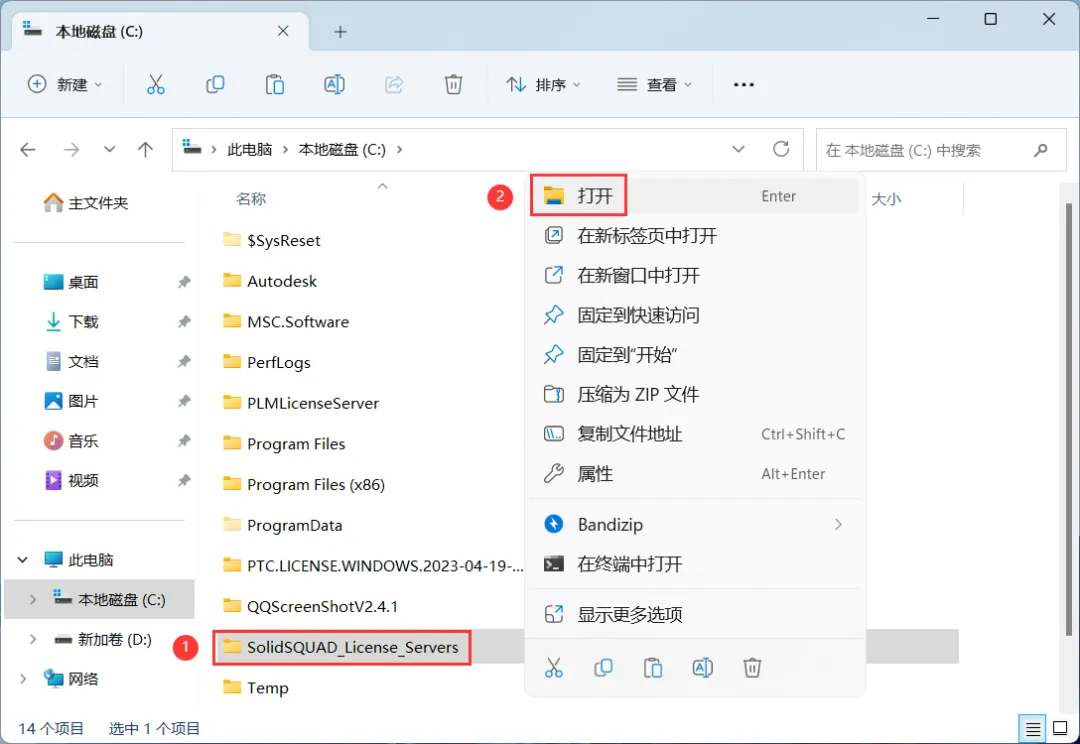 5、找到粘贴的【SolidSQUAD_License_Servers】文件夹,再右键【打开】它