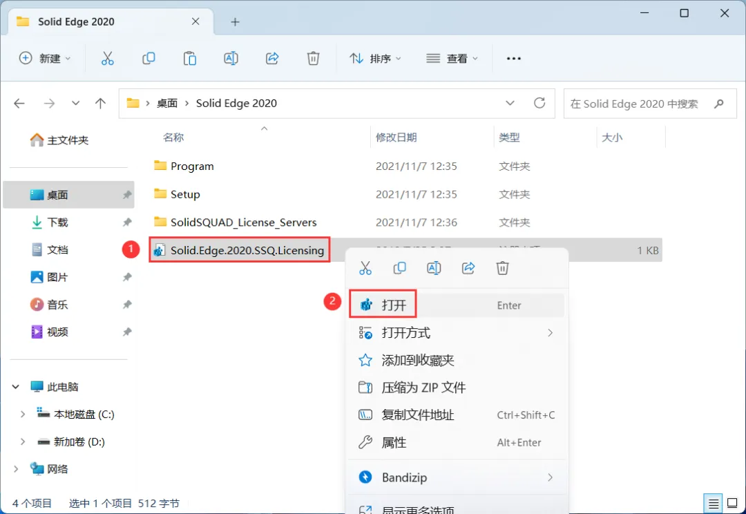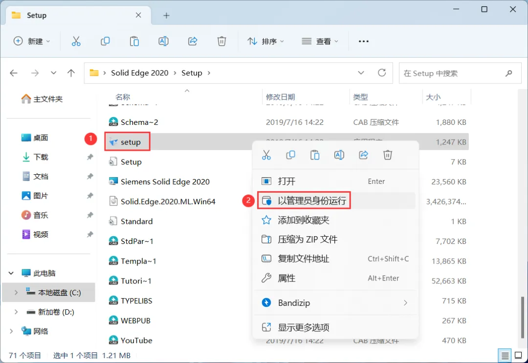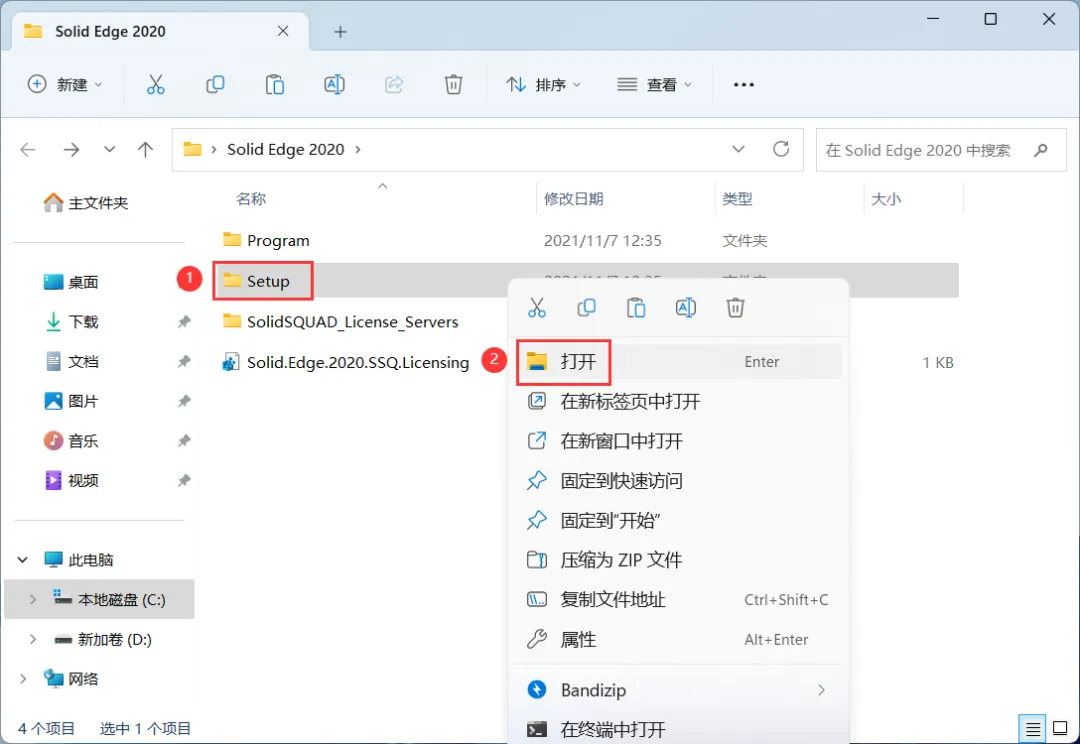 8、回到Solid Edge 2020文件夹,找到【Setup】文件夹,右键【打开】它