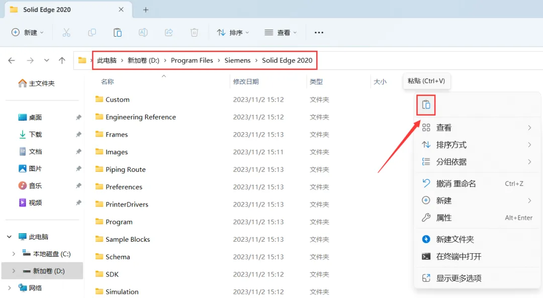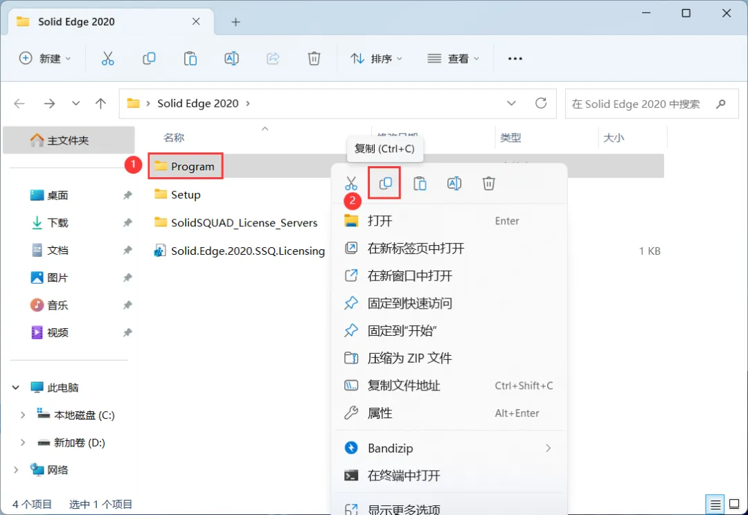 13、回到Solid Edge 2020文件夹,找到【ProgramData】文件夹,再右键点击【复制按钮】