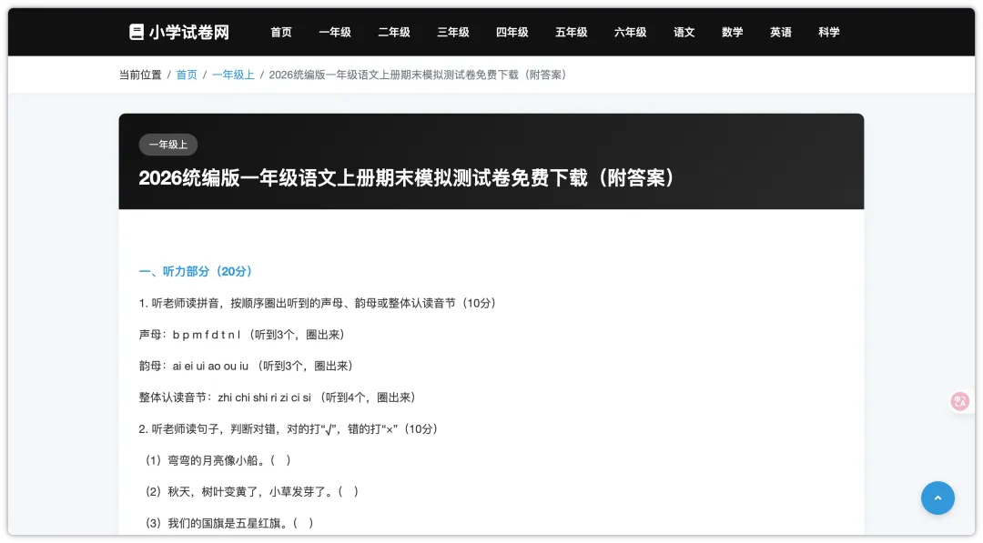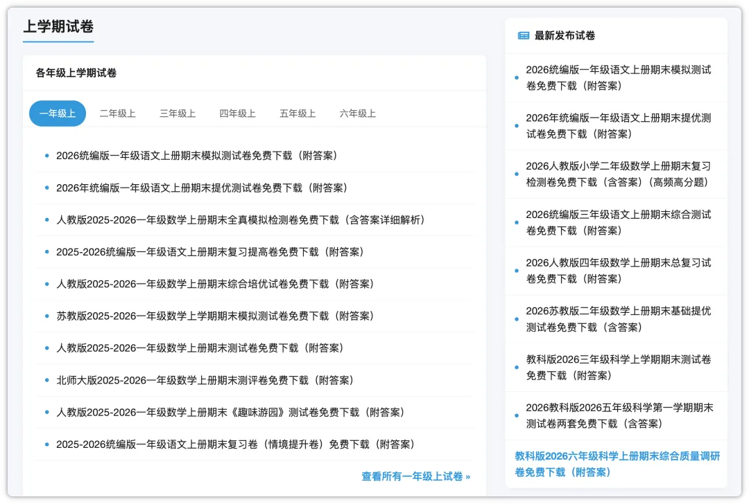 家里如果你的孩子正在读小学,相信周末或者考试之前会用得到这样的一个资源网站,毕竟如果单独去寻找和下载都是很费时间的,而且一些文库类网站还是需要你开通VIP才能下载访问的。