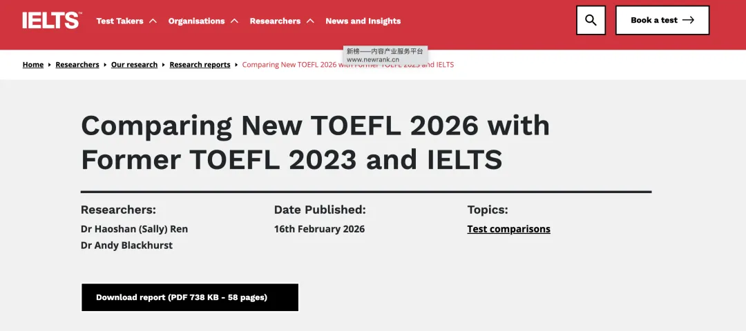 1月,酝酿已久的新版托福(TOEFL iBT 2026)正式落地。紧接着2月16日,雅思官方就毫不客气地甩出一份长达58页的PDF,字里行间都在“公开处刑”新托福。
