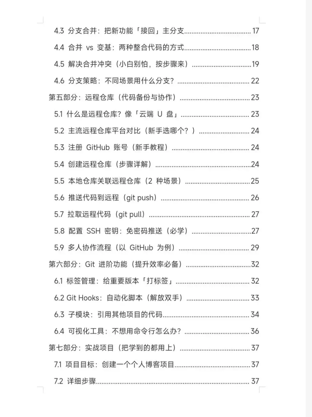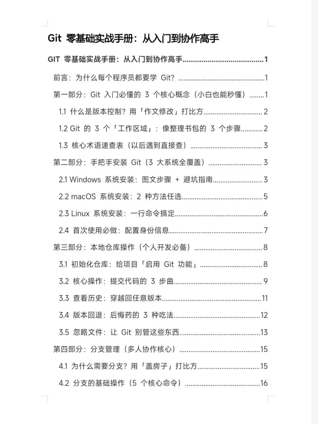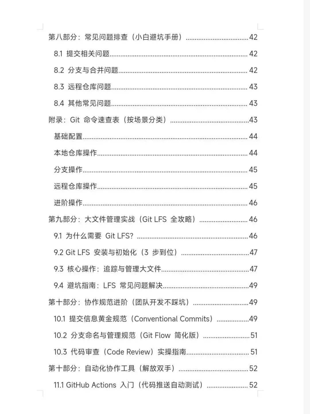 这份手册是那种看完能立刻上手、解决实际问题的资料。因为ta不是背命令,而是理解 Git。你只要花半天时间啃完它,之后所有看似高深的 Git 问题,都会变成一眼能看穿的逻辑。