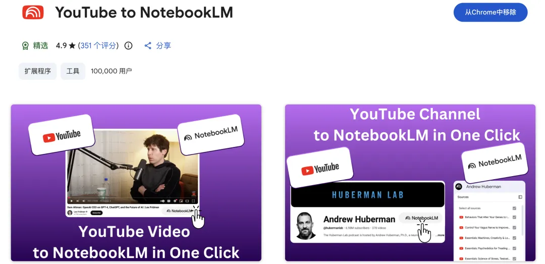 1. 在 Chrome 中搜索 “YouTube to NotebookLM” 插件