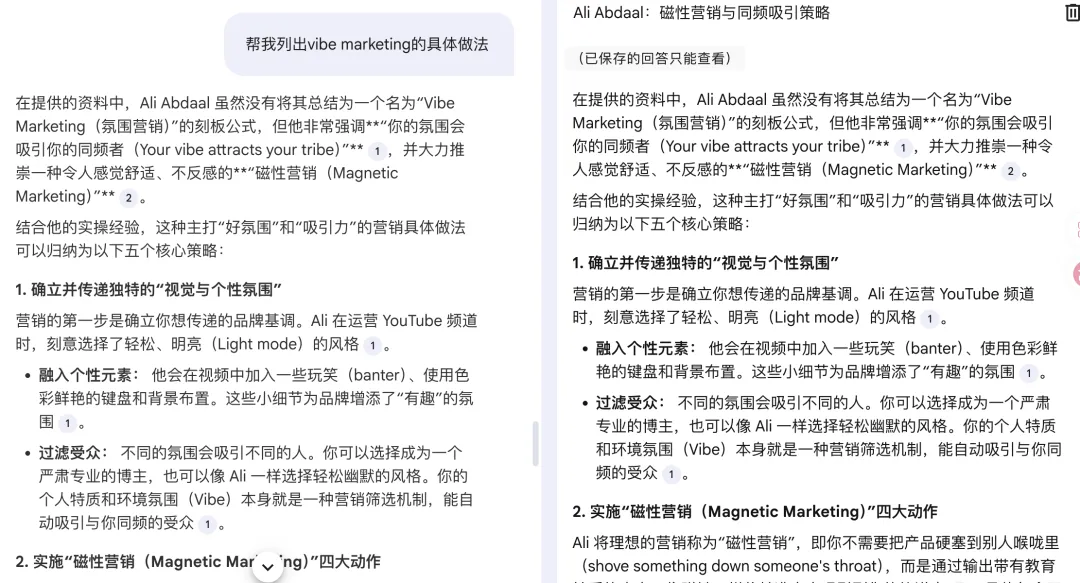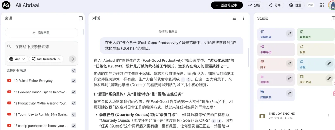 想象一下,你不用把单条的链接一条一条输出,可以把喜欢的 YouTube 博主帐号的所有视频一键导入到你的知识库中,系统性地学习他们的思维方式,看他们帐号的内容构成,随时提问并获得答案,可以针对特定的板块生成PPT分享——是不是一件很酷的事情?