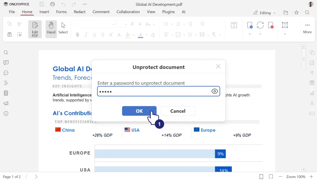 编辑受保护的 PDF:输入密码后即可直接解锁并编辑文件。