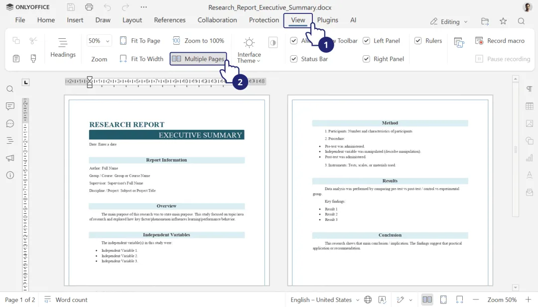 多页视图:可并排查看多个页面,方便校对排版。