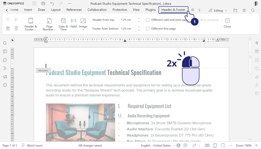 页眉页脚选项卡:所有页眉页脚设置集中到独立选项卡。
