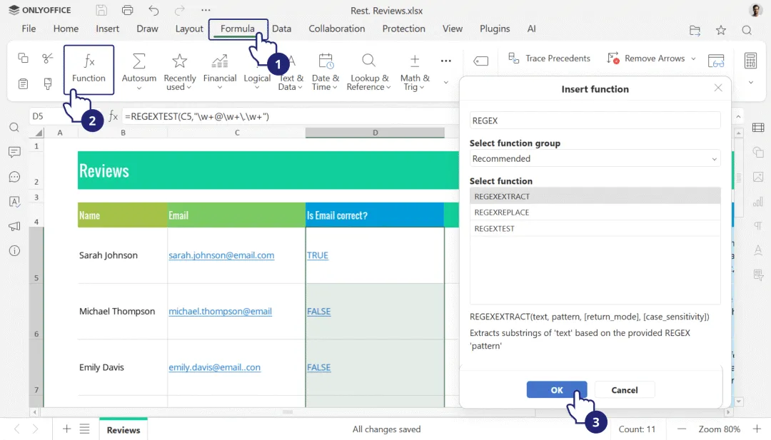 扩展公式库:新增正则表达式函数,包括 REGEXTEST、REGEXREPLACE 和 REGEXEXTRACT,使复杂文本数据处理更加便捷。