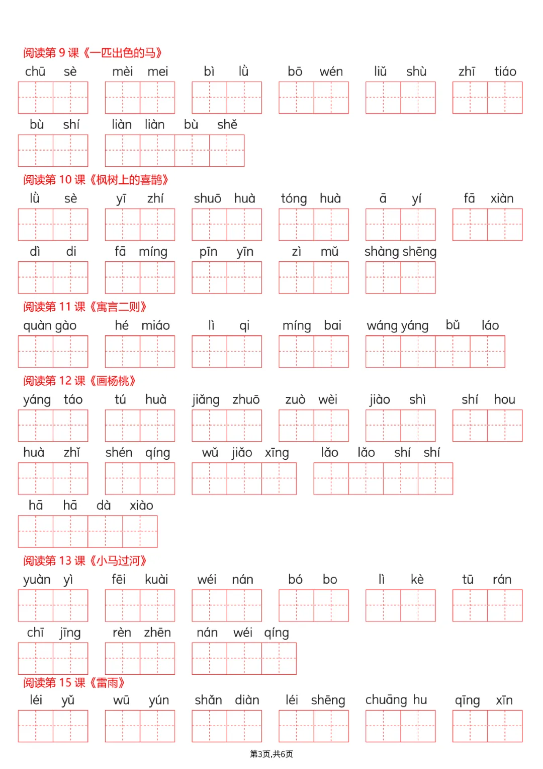 二年级下册语文词语表看拼音写词语(电子版可打印)
