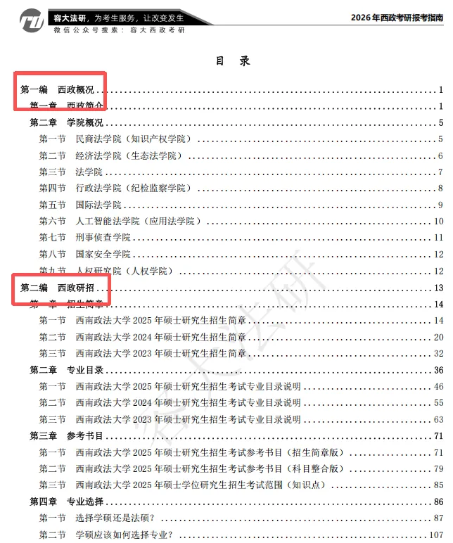 报考指南可以解决你考研期间所有常识类、方法论类的问题,我愿称之为西政考研《万能书》: