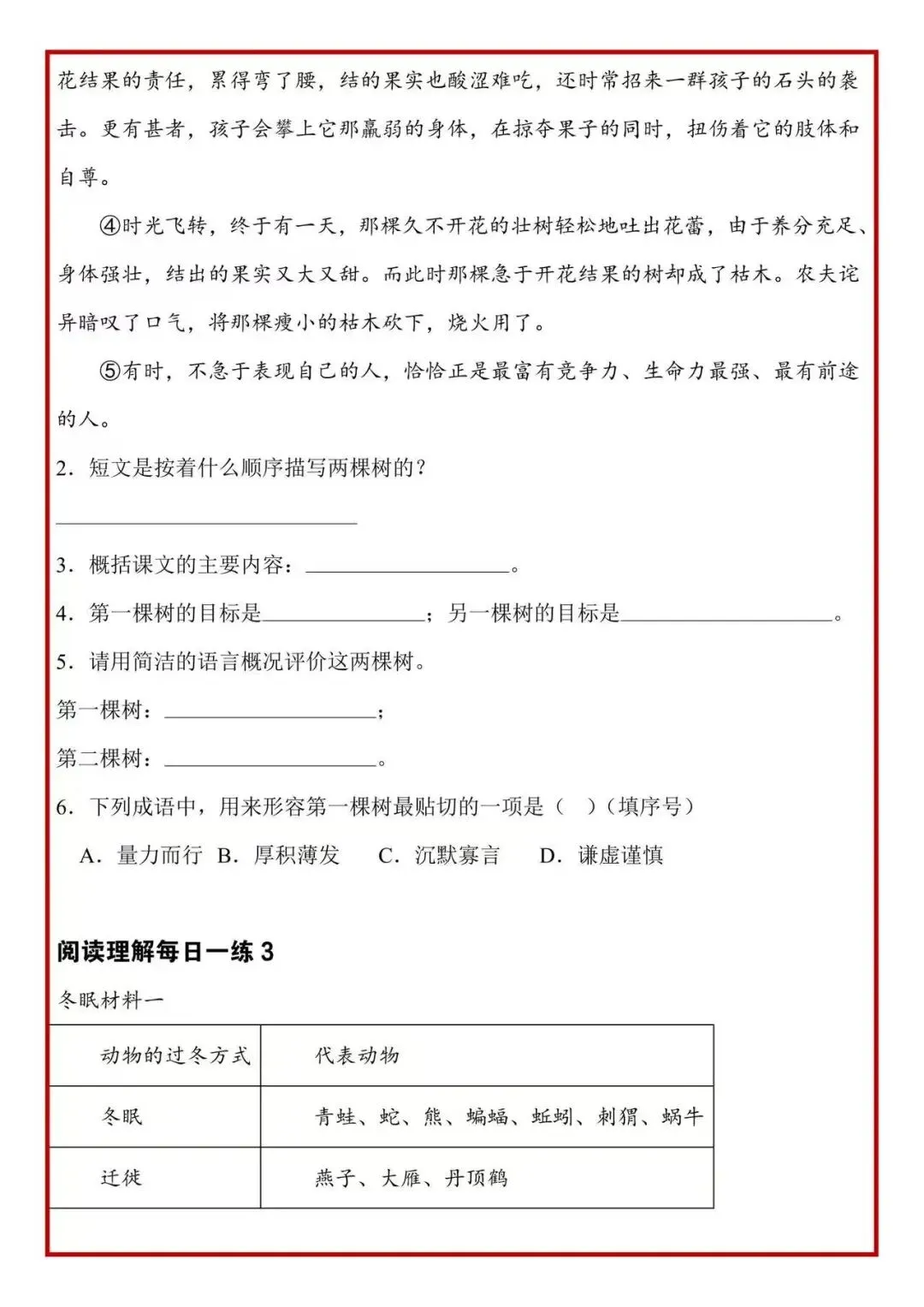 大家好我是提优补差;今天跟大家分享的是;2026春人教部编版新四年级下册语文《课内外阅读理解历年真题》(常考题型每日一练+答案),提供电子版,支持打印和下载。
