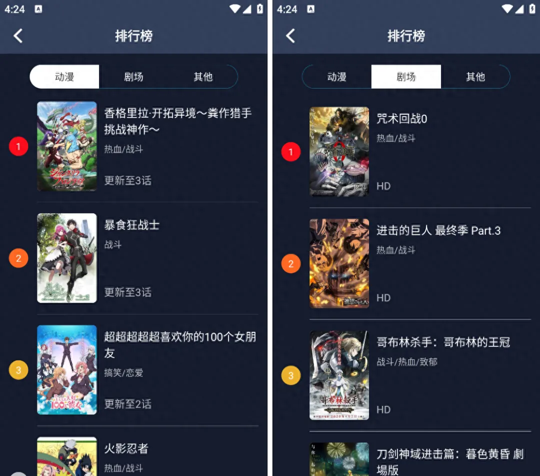 排行榜则是每个系列的排名,像小编这种经常剧荒的人就比较适合在这里寻找喜欢的番剧。