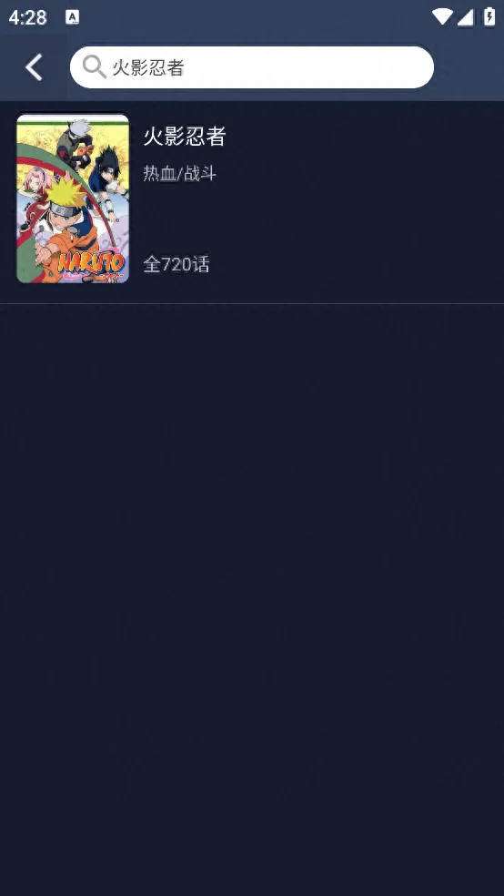 也可以直接搜索你想看的番剧,小编今天想看火影忍者,直接输入名字搜索,结果马上出现了,全720话,搜啥有啥,非常强大。