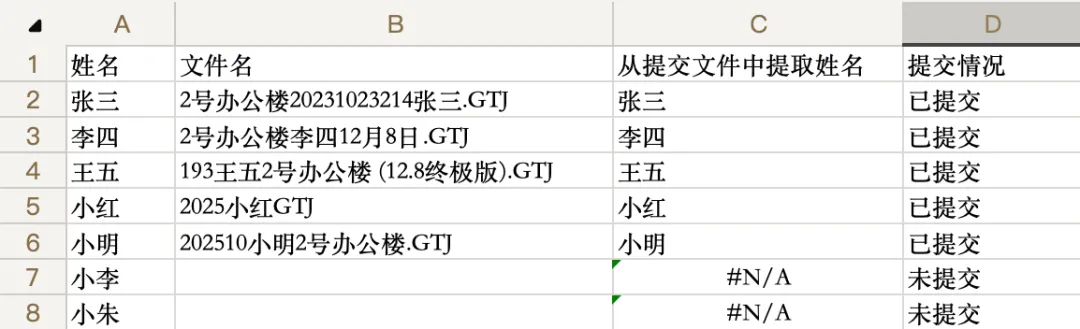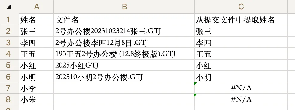 WPS Excel/如何清洗、提取文件名中信息并进行核对