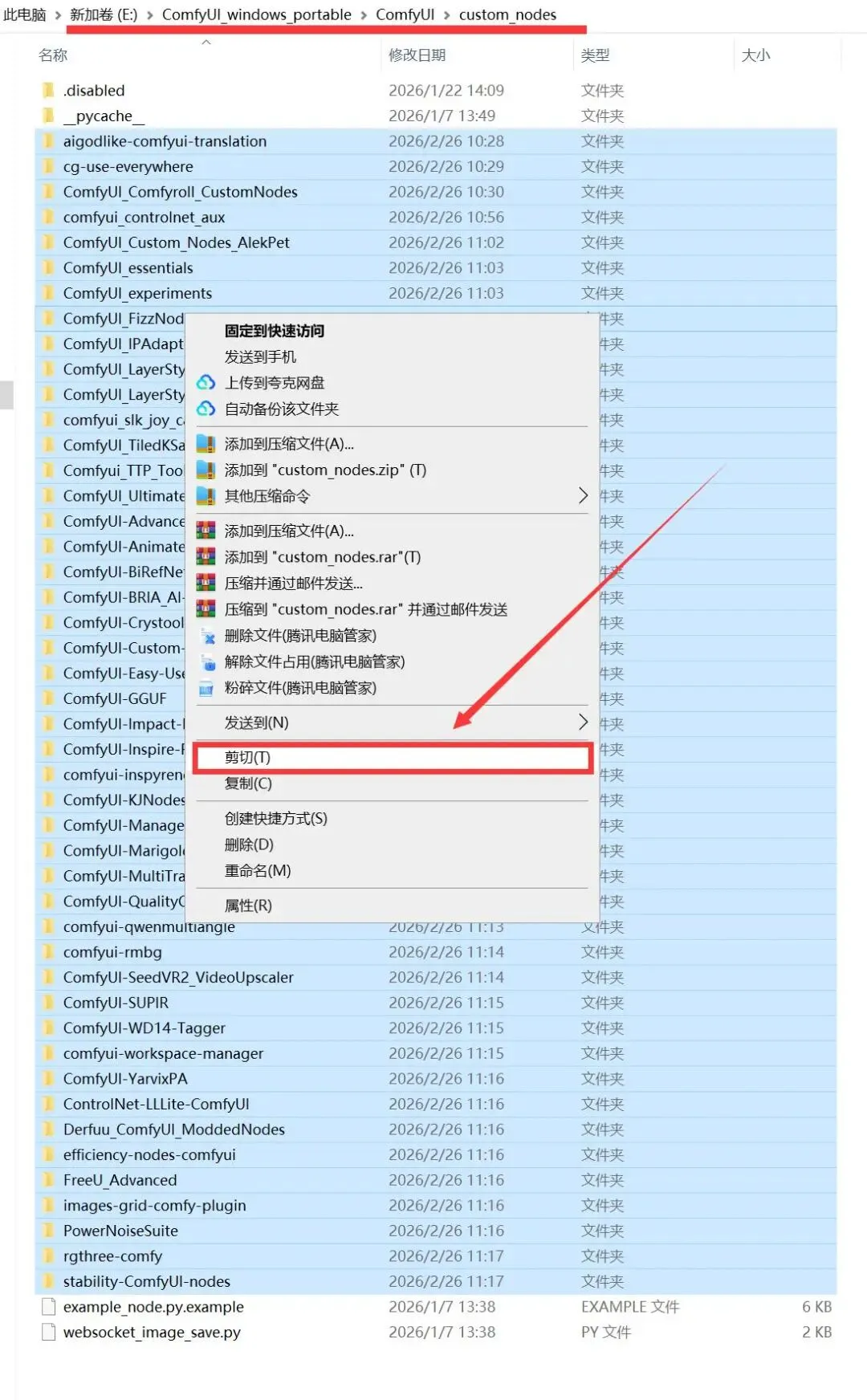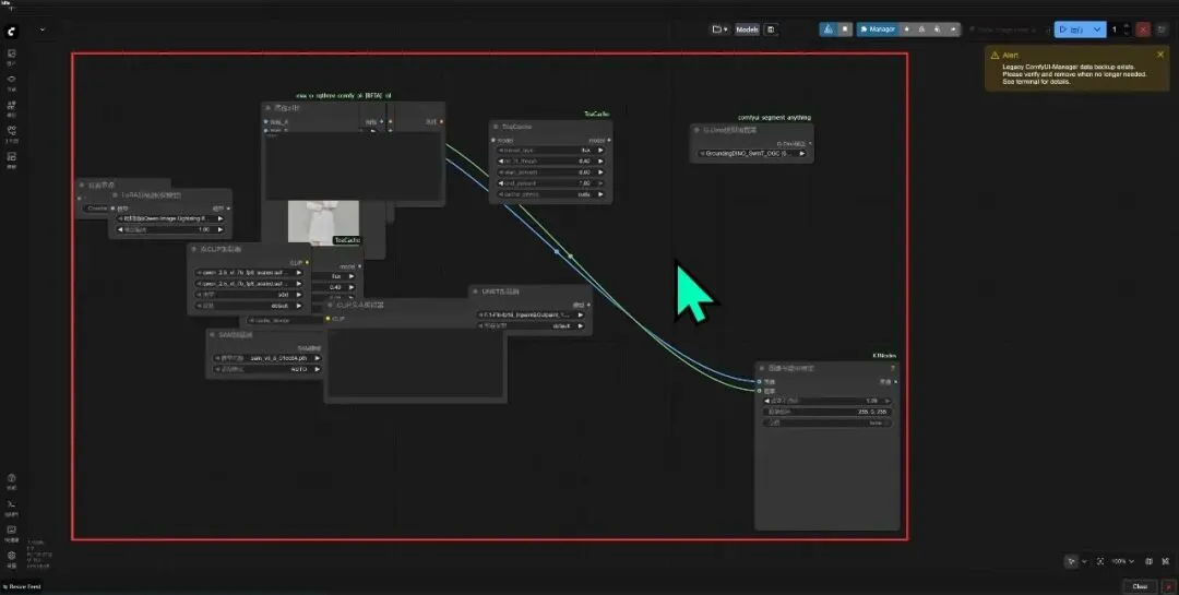 利用排除法,先把custom_nodes文件夹下的节点全部剪切出去,再一个一个粘贴回来,粘贴一个节点就运行一次启动器,直到粘贴到某一个节点时,运行启动器后节点出错堆叠在一起,那么它就是罪魁祸首,不要急着盘它,先把有问题的节点放到一边,再继续粘贴,因为可能有多个节点都有问题。