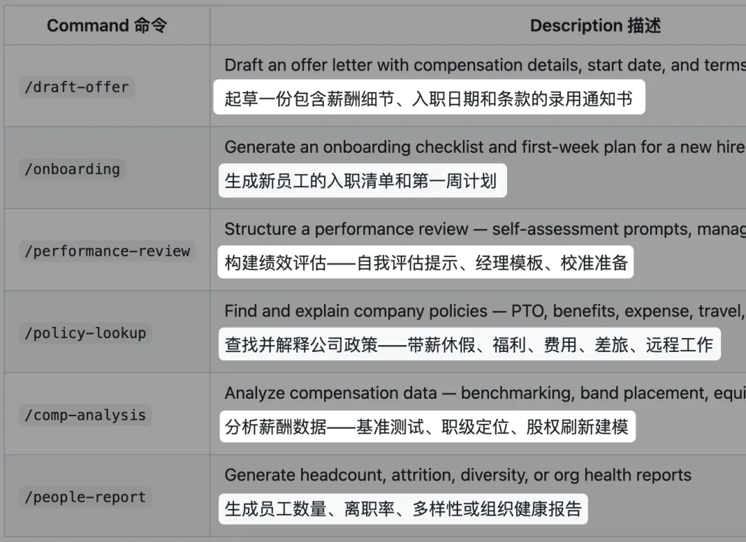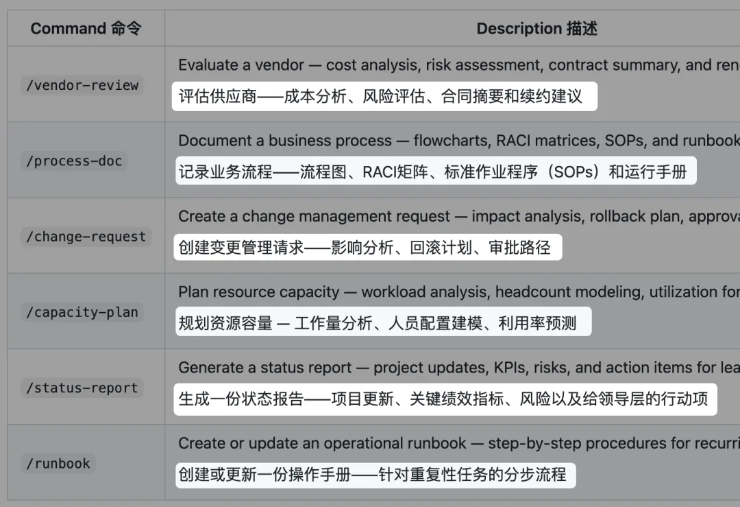 这次发布的插件不是给你一个空白AI让你从零开始训练,而是已经帮你设计好了整套工作流程。每个插件都是和对应领域的专业人士一起打磨出来的,包含了这个岗位最常用的指令和标准输出格式。
