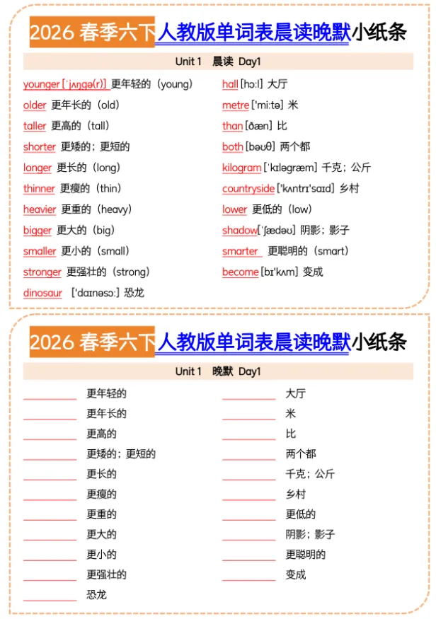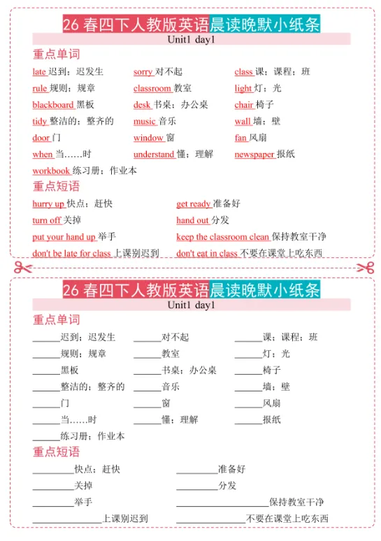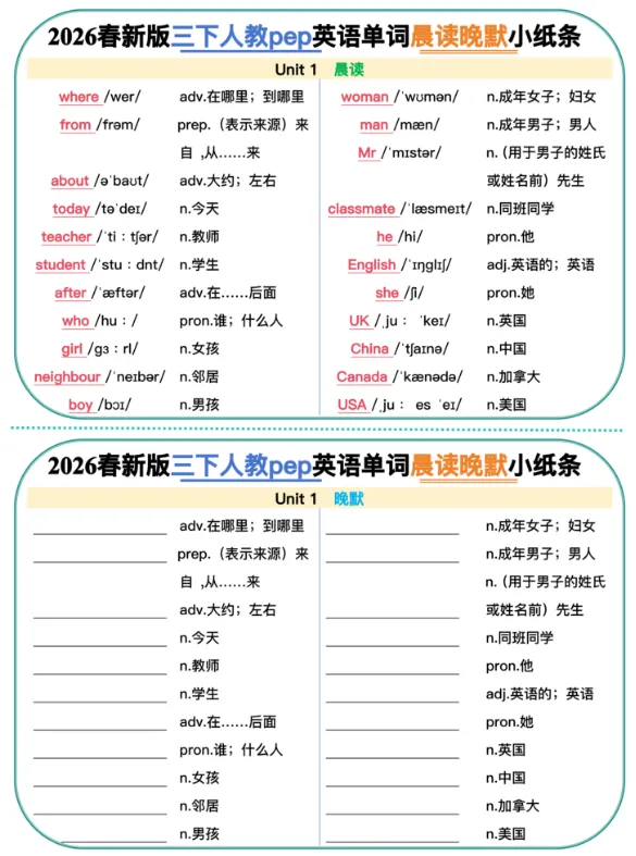 【免费下载】济南小学3-6年级下册英语晨读晚默,可打印↓↓↓