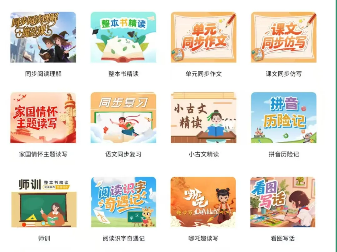 覆盖全阶段学习需求:从经典名著、校内同步课文,到各类绘本读物,满足不同年龄段学员的阅读需求;同时配套习题、专项训练,涵盖字词积累、阅读理解、写作提升等核心板块,精准对接语文学习重点。除此之外,整本书阅读、识字、拼音、仿写、作文等伴学打卡资源一站式配齐,无需老师额外搜集整理。