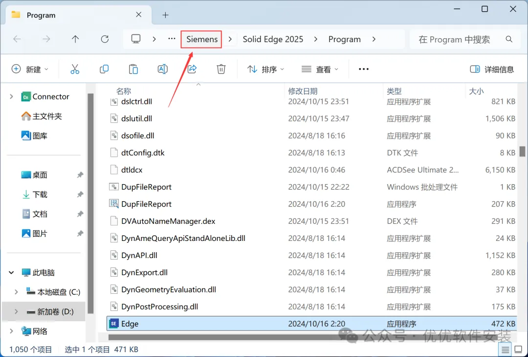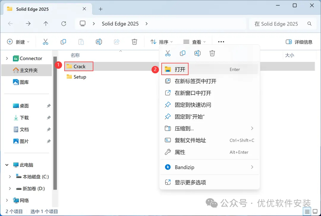 9、回到Solid Edge 2025文件夹,找到【Crack】文件夹,右键【打开】它