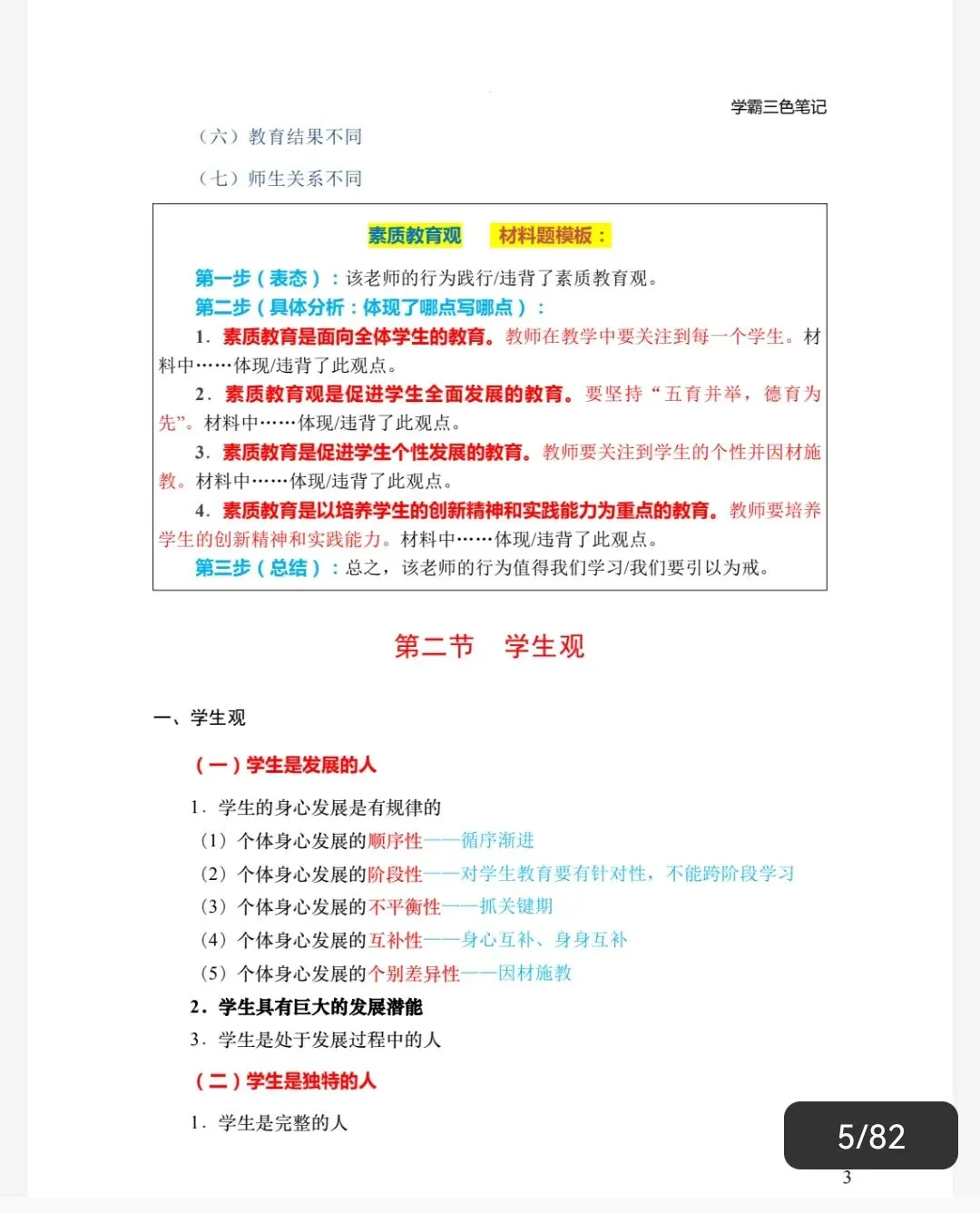 小学教资笔试资料|学霸三色笔记(PDF版)
