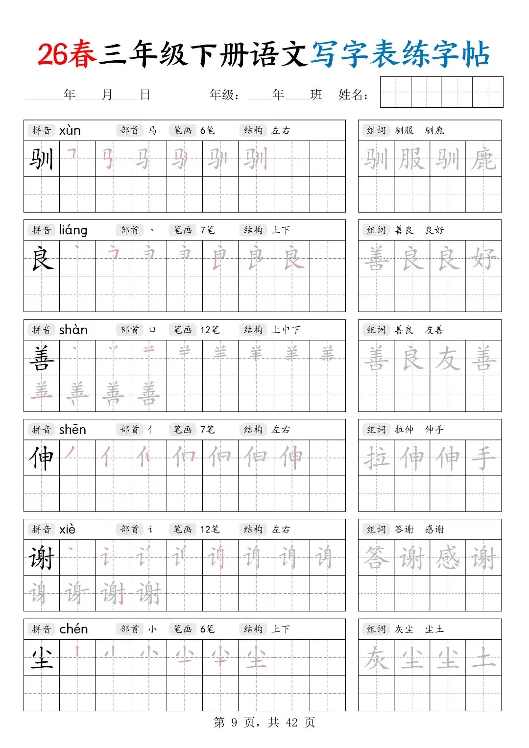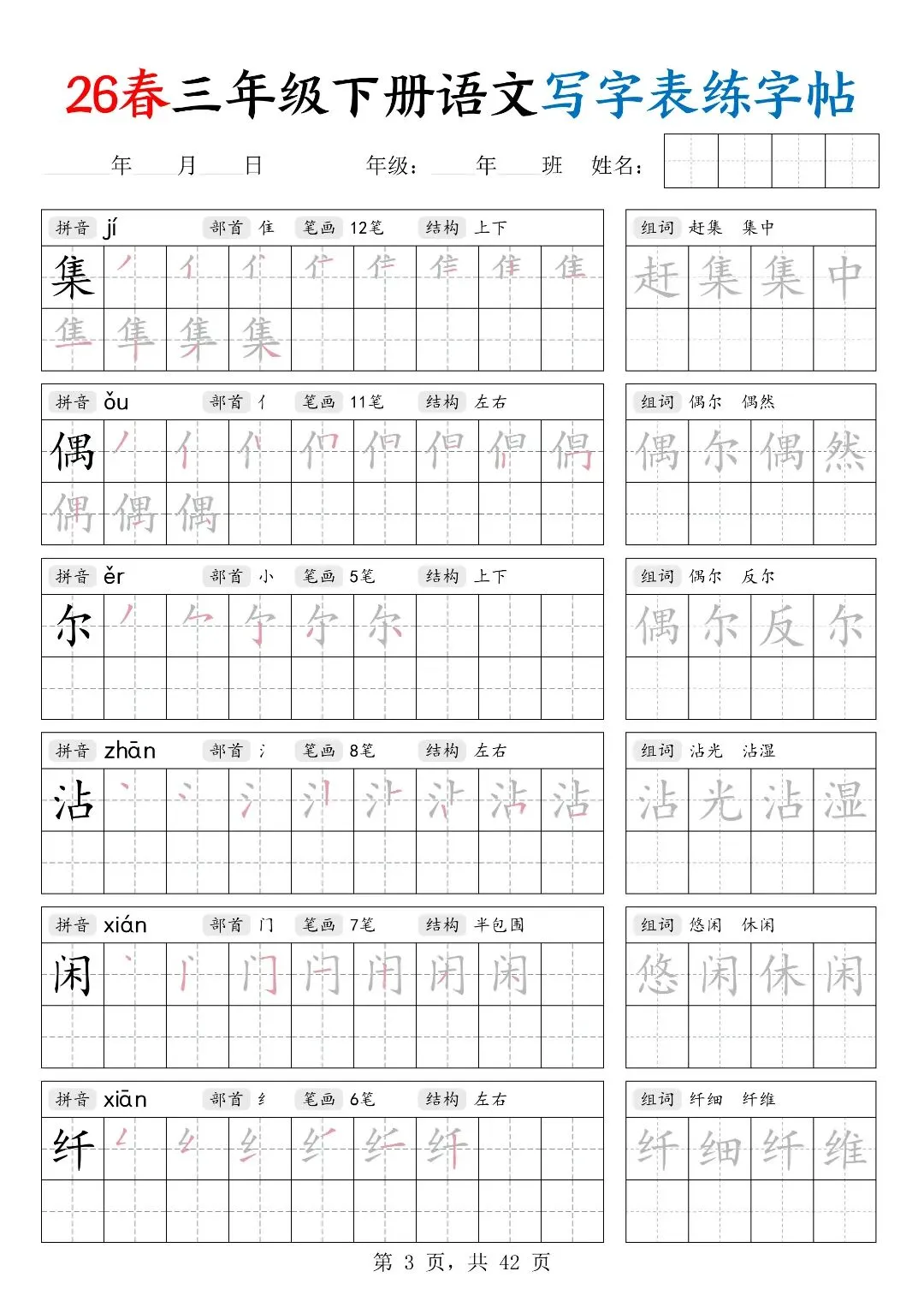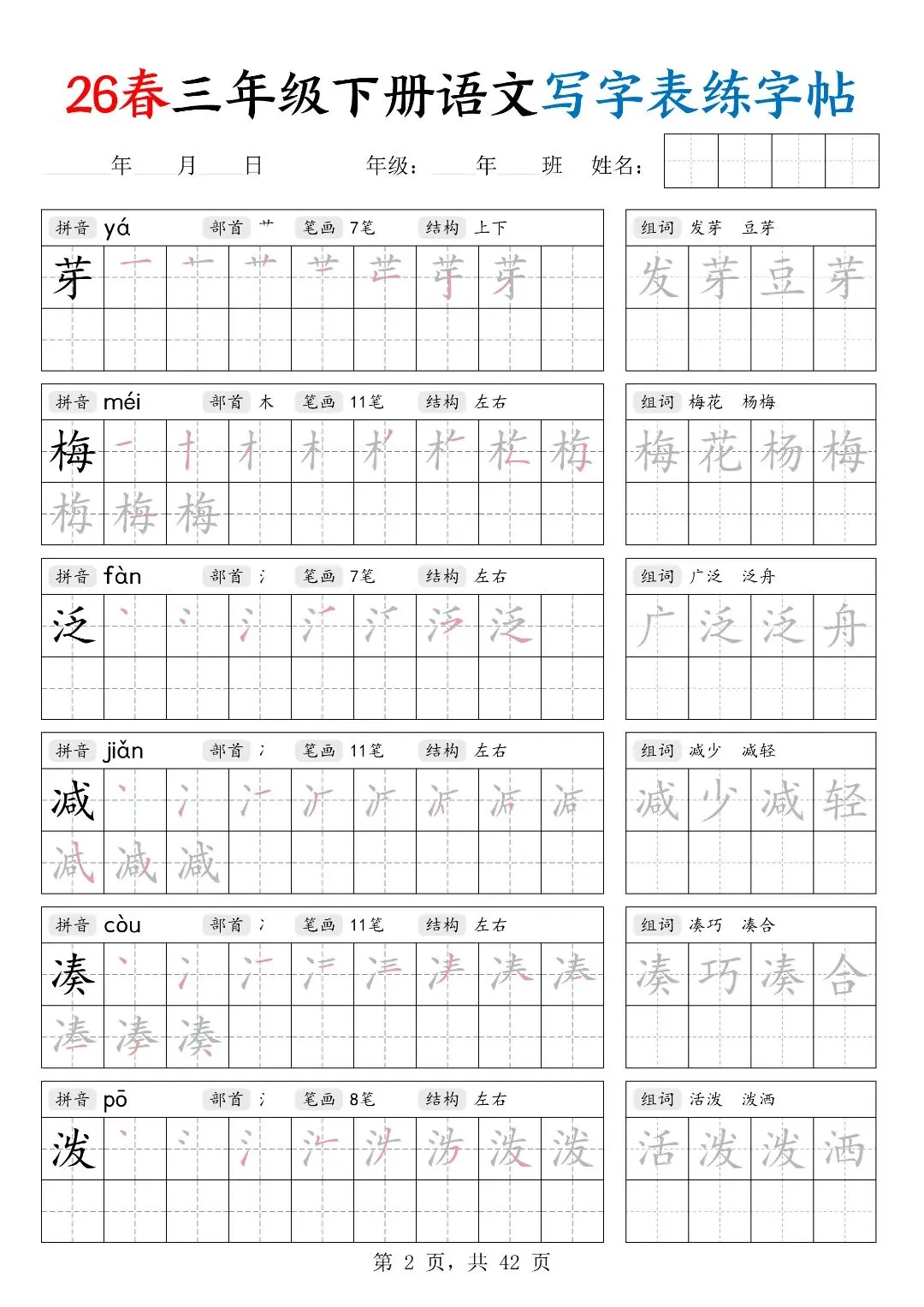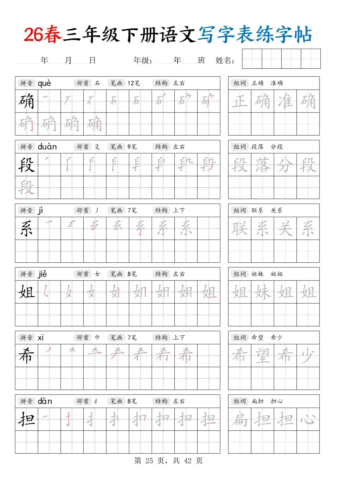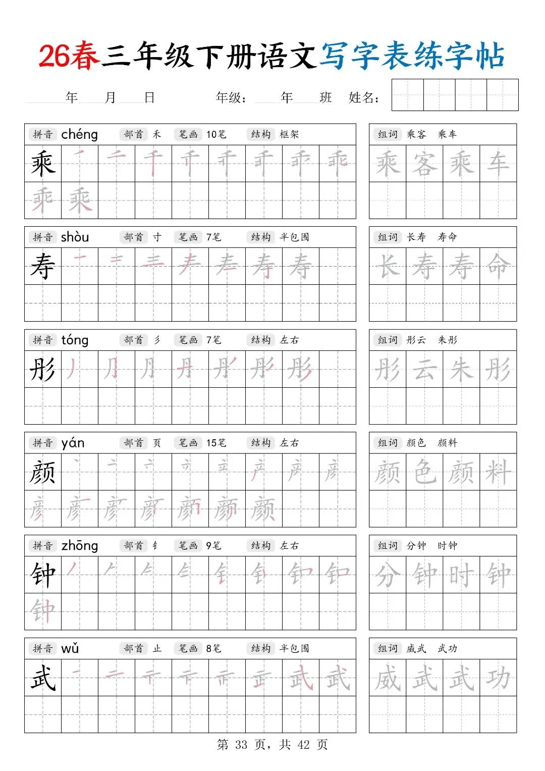 26春三年级下册人教部编版【语文写字表字帖】|完整电子版可打印