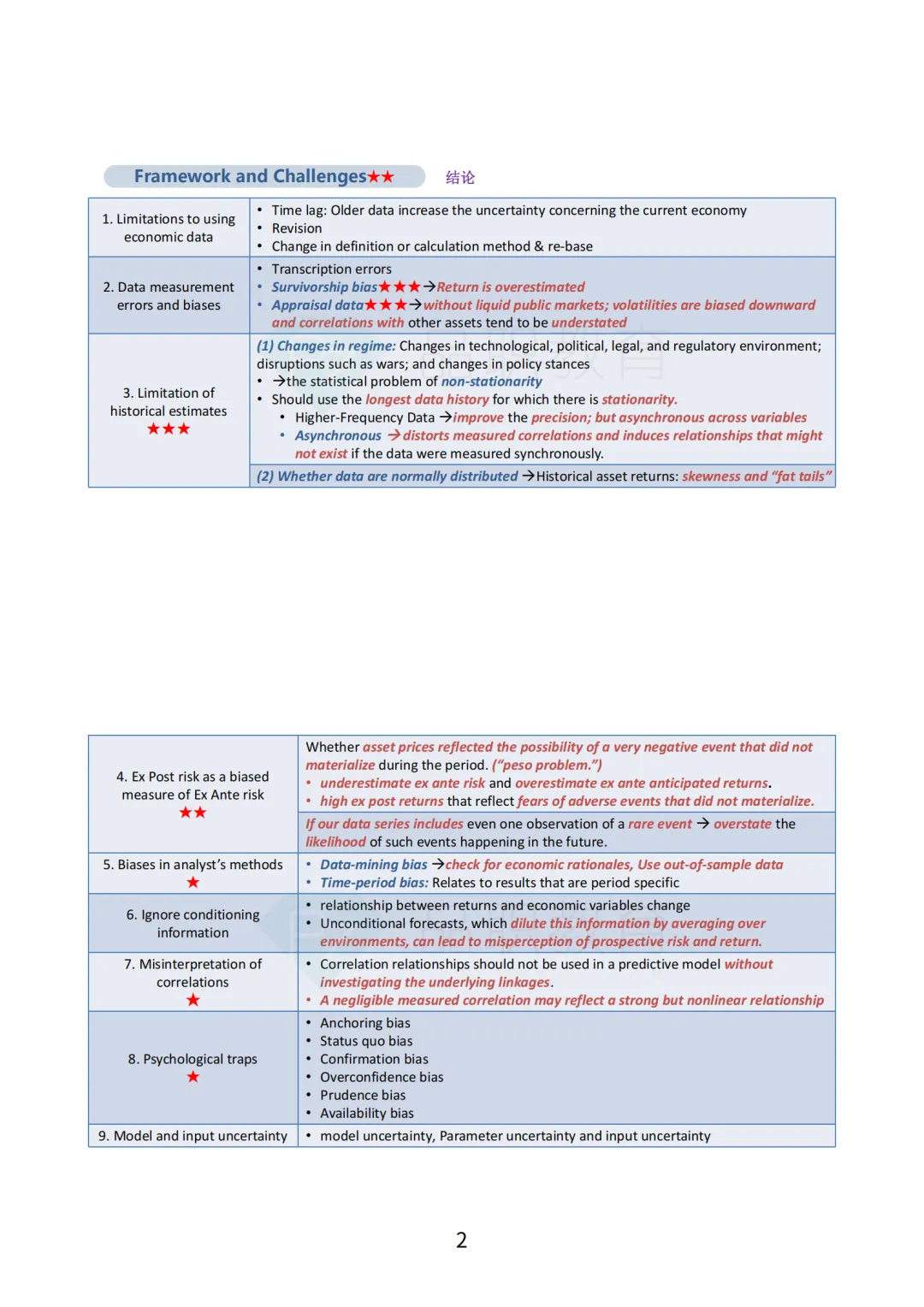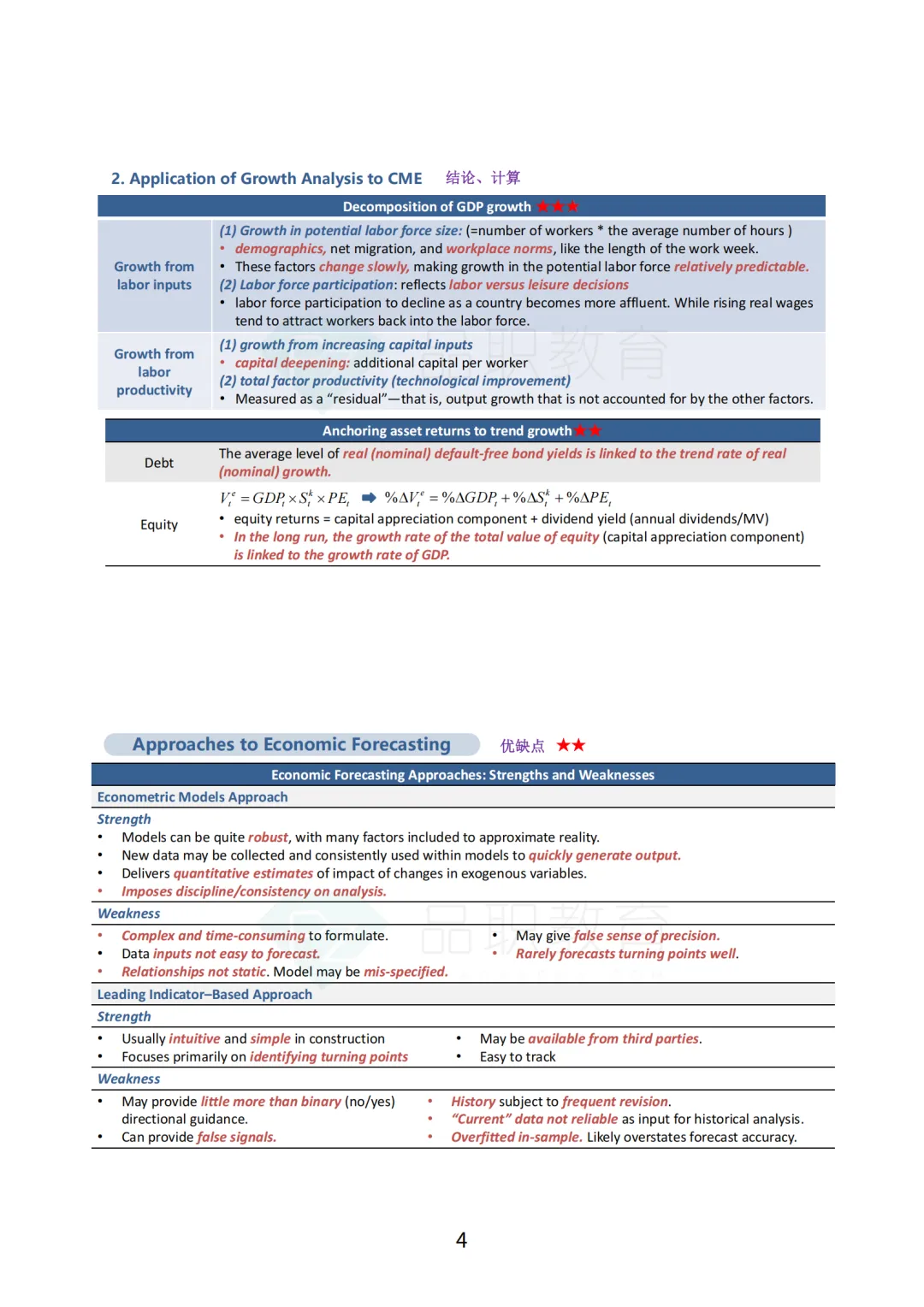我们框架图对考点的重要性做区分,字体标红色部分是非常重要的名词和考法,重要的知识点为了强调打了星号,重要公式已列出。