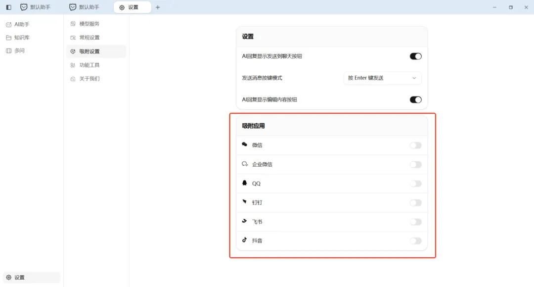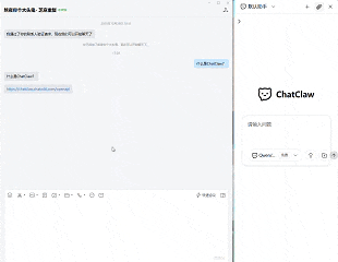 支持微信、企业微信、钉钉、QQ、飞书、抖音等主流应用,选中文字后点击【AI 对话】,内容直接进入 ChatClaw 侧边窗口,即时问答、总结、润色、翻译。