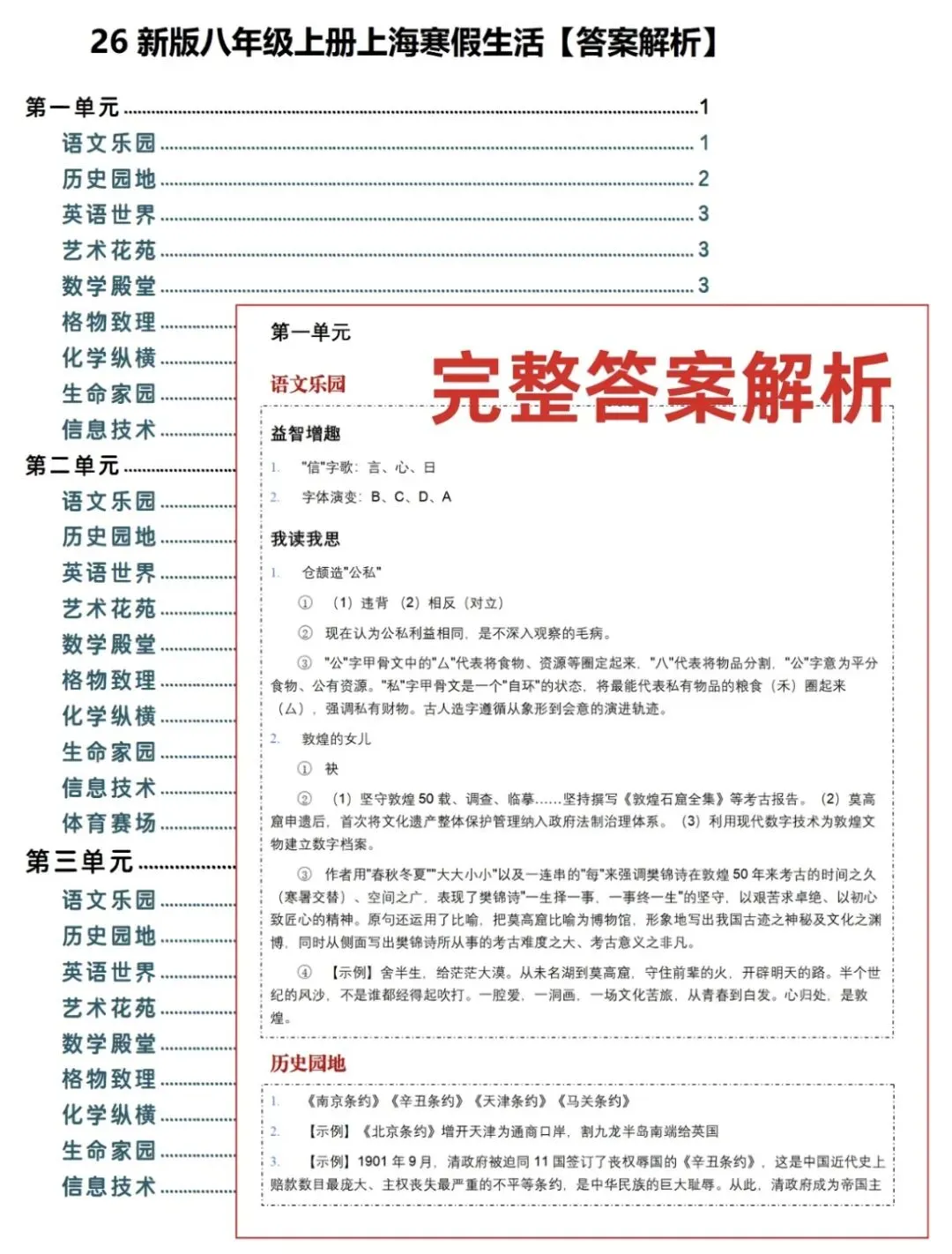 上海 5-8 年级【寒假生活】答案合集|电子版可打印