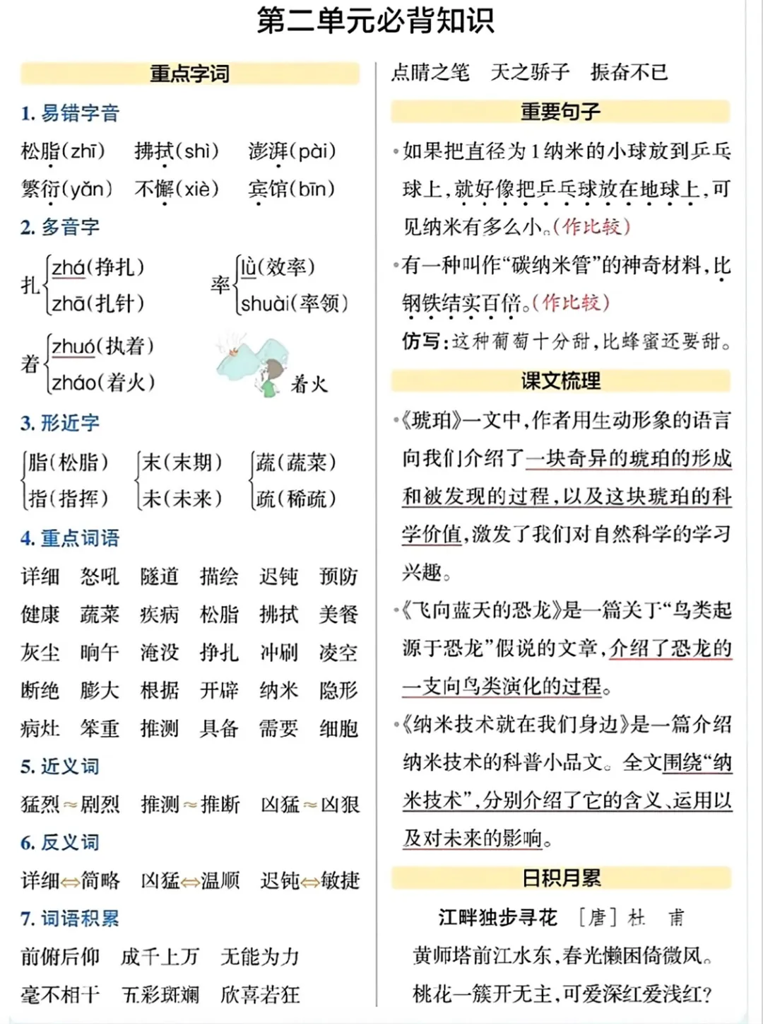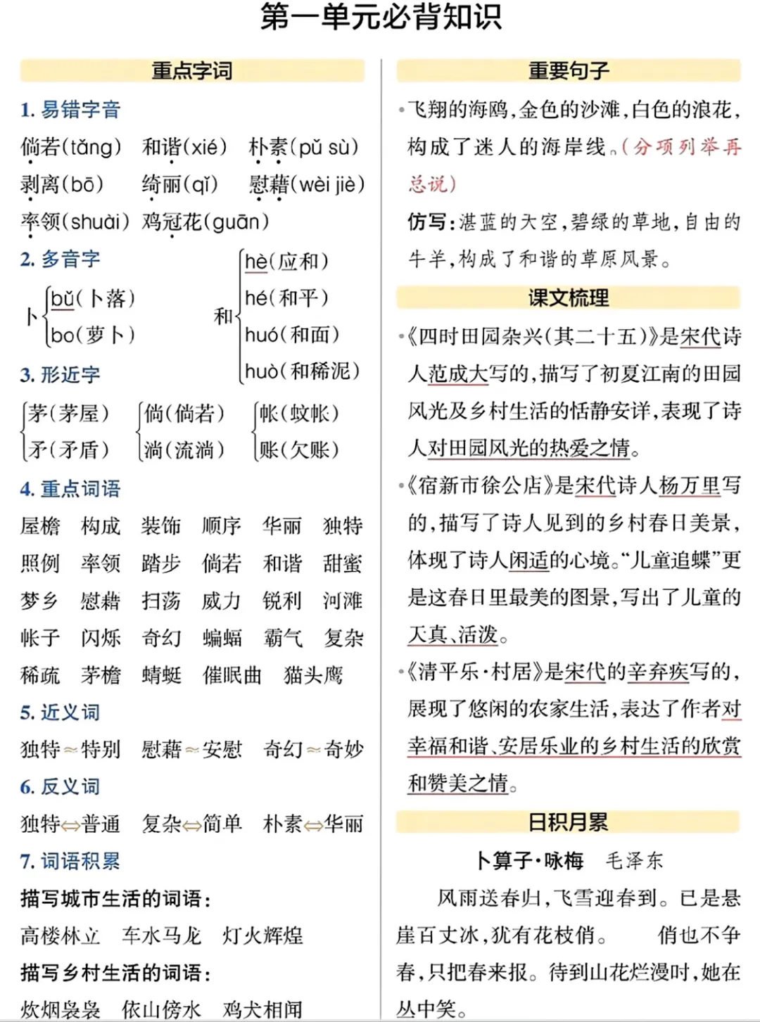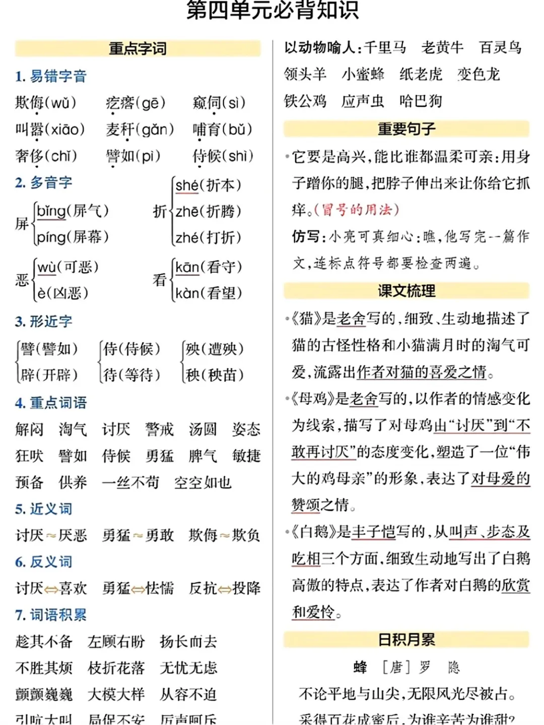 四年级(下册)语文单元必备知识汇总-可打印