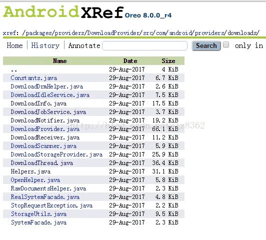 最近在进行一次测试用例中,发现测试手机在利用本地下载功能下载0K大小的文件时,进度条一直处于进度模糊状态中,虽然查看本地存储路径,发现文件已经存在,但是页面上并没有提示下载成功,此时只能对下载执行暂停或删除操作。最初只是怀疑是自身应用的问题,但是在试了自己的华为畅享5s(Android5.1)、联想S560(Android.4.2)(暴露贫穷了)及朋友的ZTE小鲜(Android6.0)、华为P9(Android7.0)等三款不同厂商的设备后,发现都有相同的现象,所以怀疑这是android自身的一个待优化点(说bug有点严重了,毕竟0K大小的文件谁会经常遇到呢)。在此基础上,对AOSP的DownloadProvider进行了一番研究,源码资源大家可以访问http://androidxref.com/,最新的Android Oreo源码也可以在上面查阅。