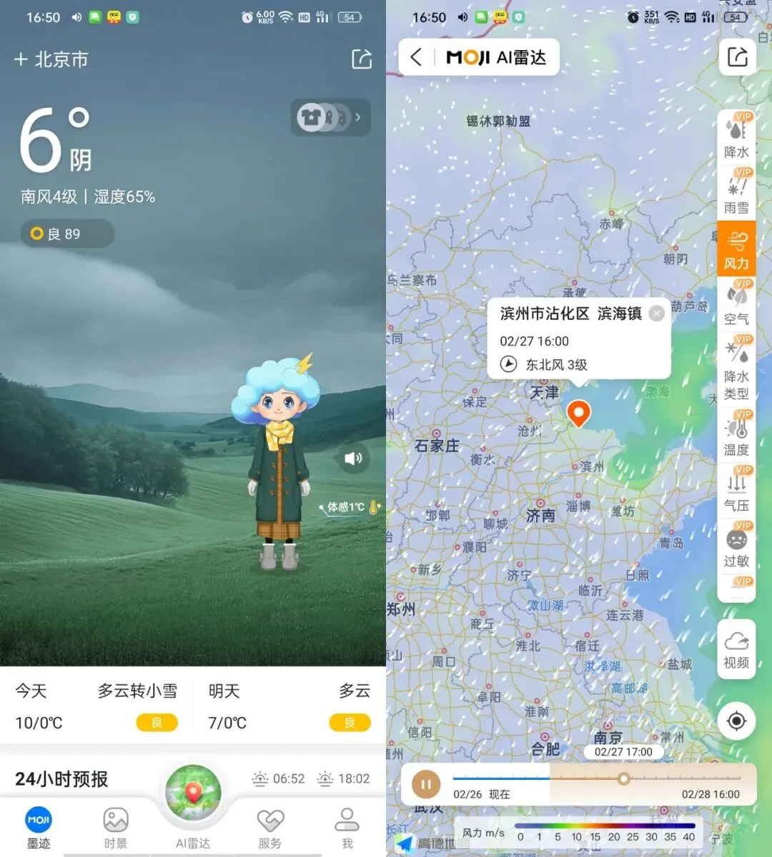 **简介:** 墨迹天气是一款知名的天气信息服务应用。它提供实时天气、未来多日预报、空气质量指数、分钟级降水预报、台风路径及地震预警等服务。其特色功能包括AI指数(为户外活动提供智能决策)和48小时分钟级降水地图,稳居天气类应用用户规模榜首。