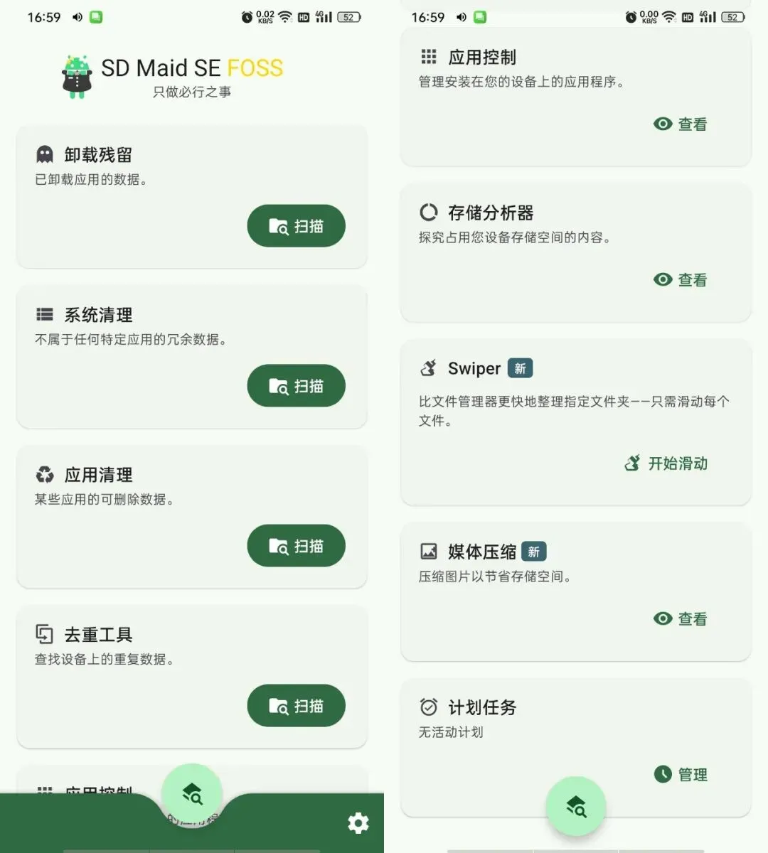 **简介:** SD Maid SE是一款知名的系统清理与优化工具,是经典SD Maid的升级版本。它可以深度扫描并清除设备中的卸载残留、系统垃圾文件、应用缓存以及重复文件。同时具备数据库优化和应用管理功能,有助于释放存储空间、提升手机运行效率,是维护设备健康的强大助手。
