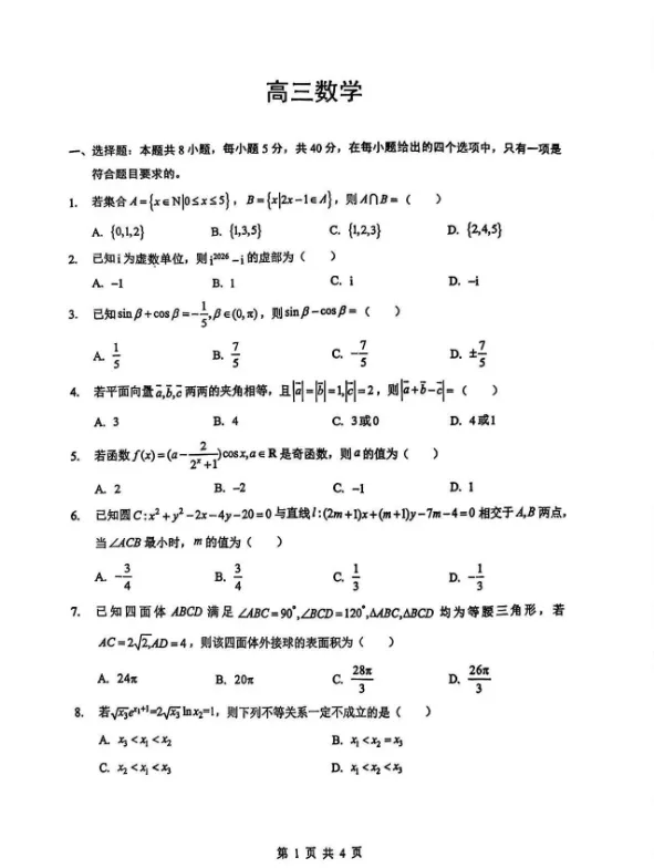 2026年湖北省高三2月检测试卷(电子版pdf)