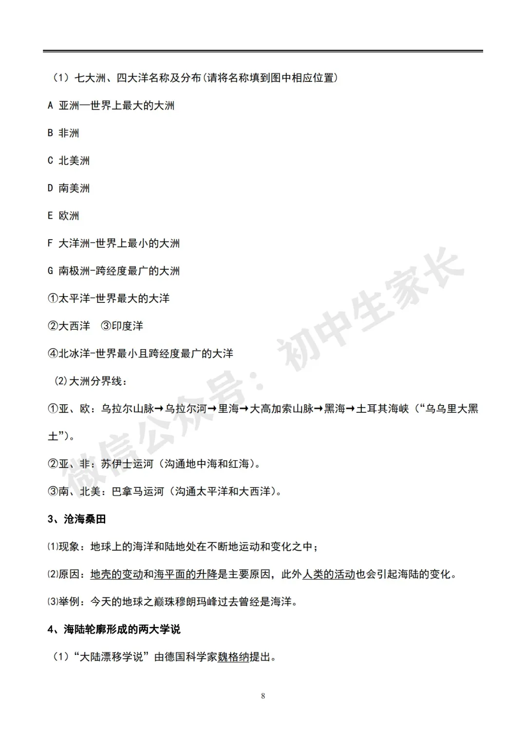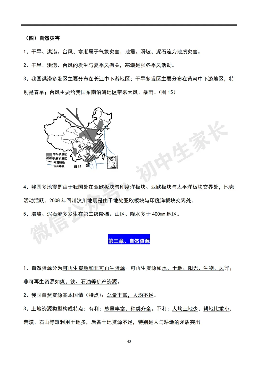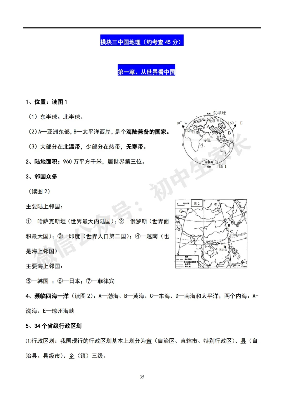 初中地理会考知识总结【全四册,62页可打印】超全面!(转给孩子)