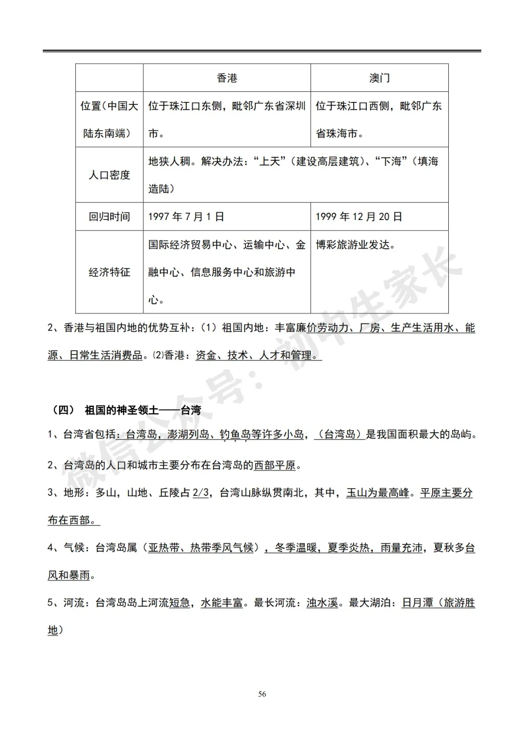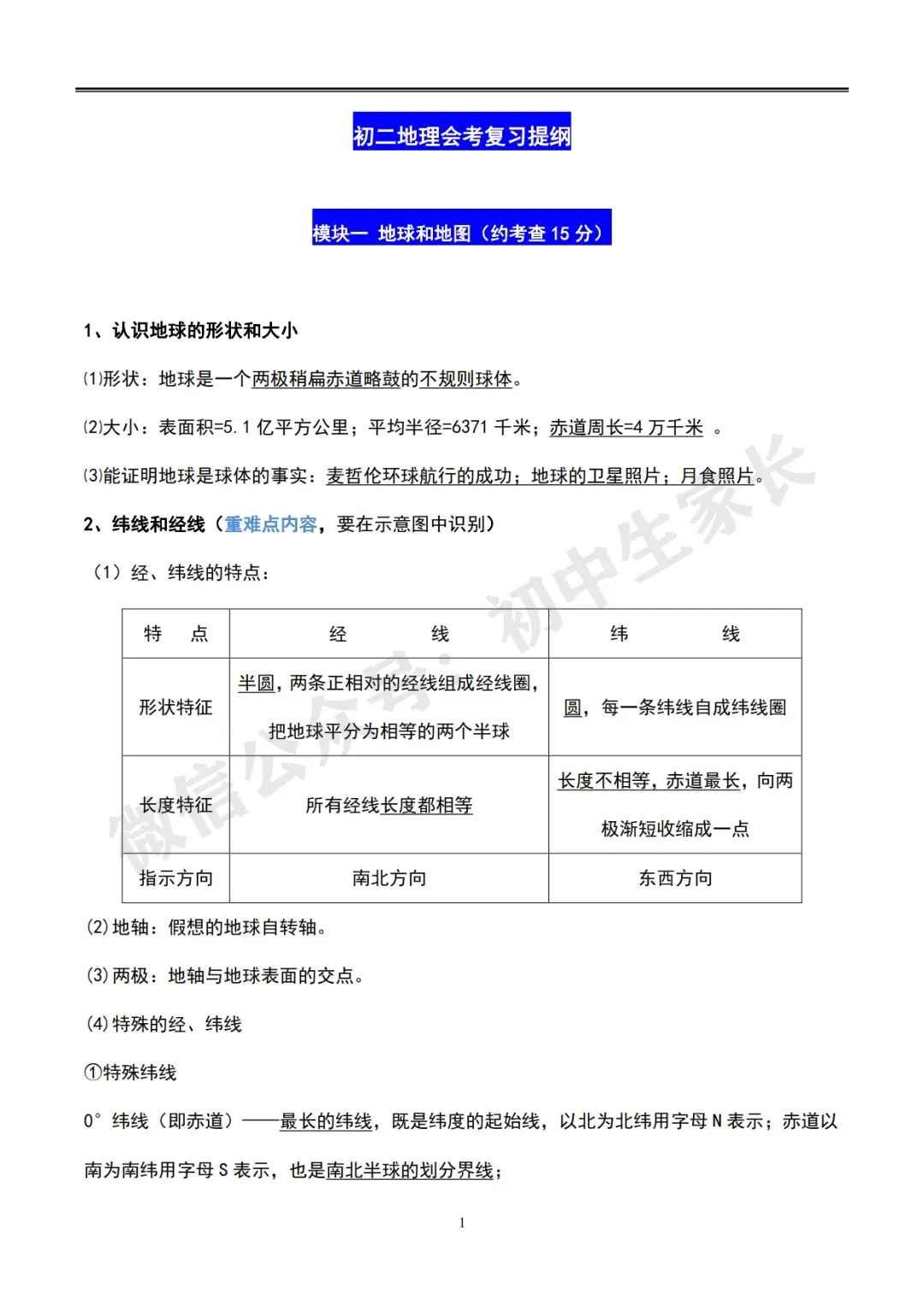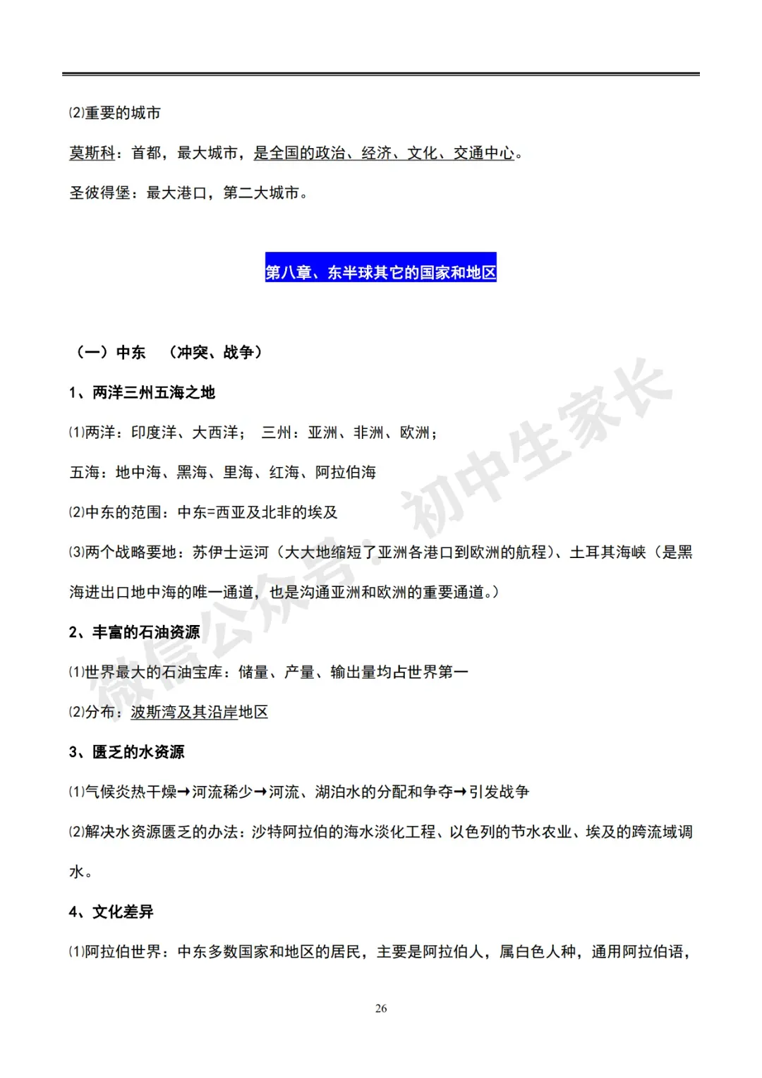 初中地理会考知识总结【全四册,62页可打印】超全面!(转给孩子)