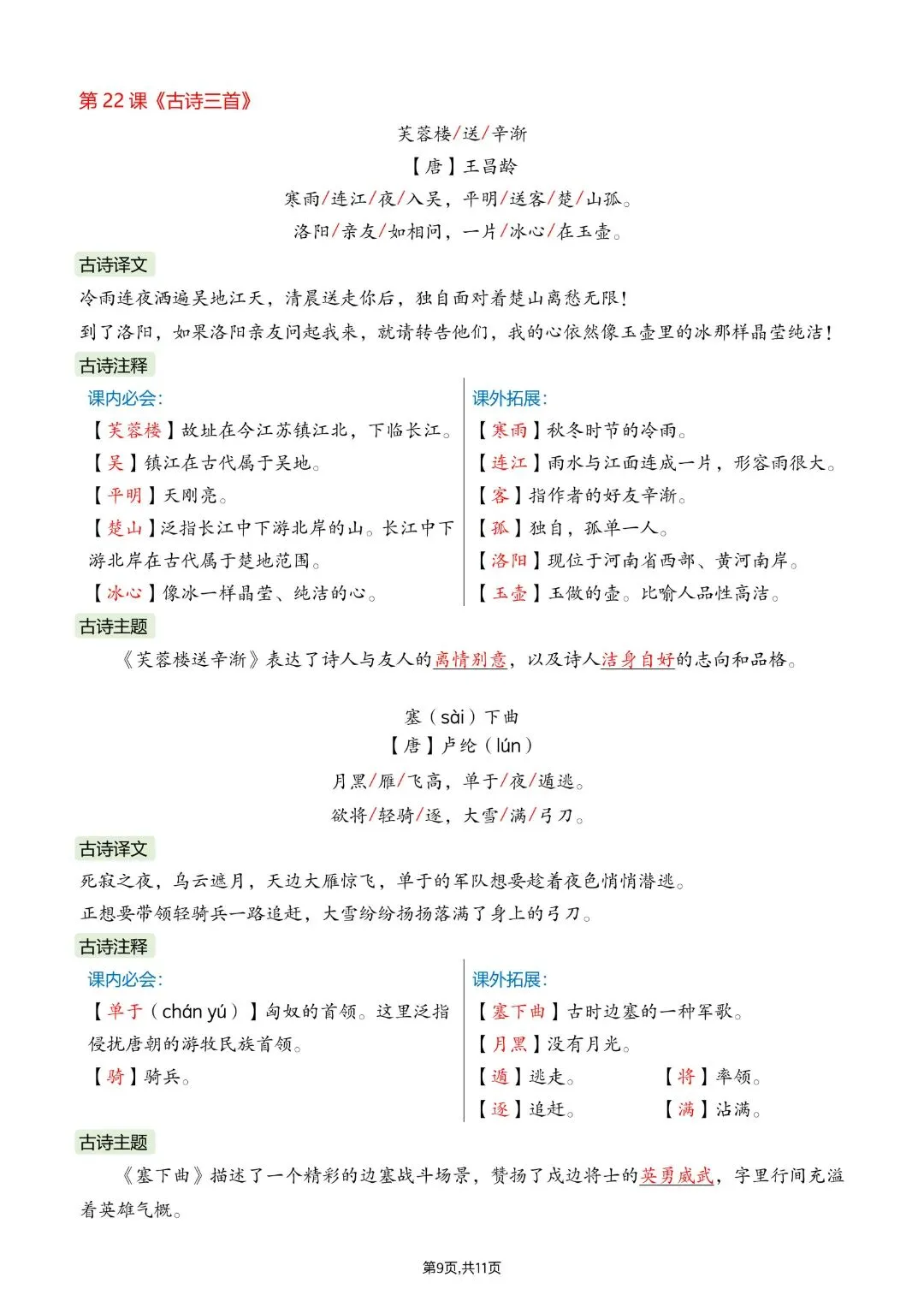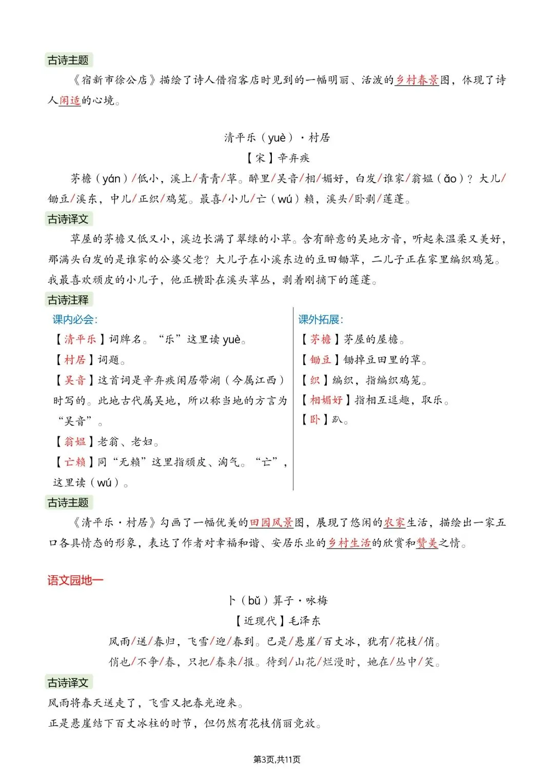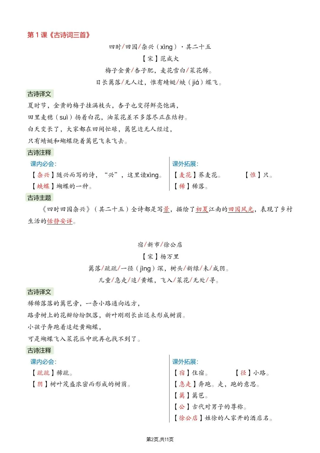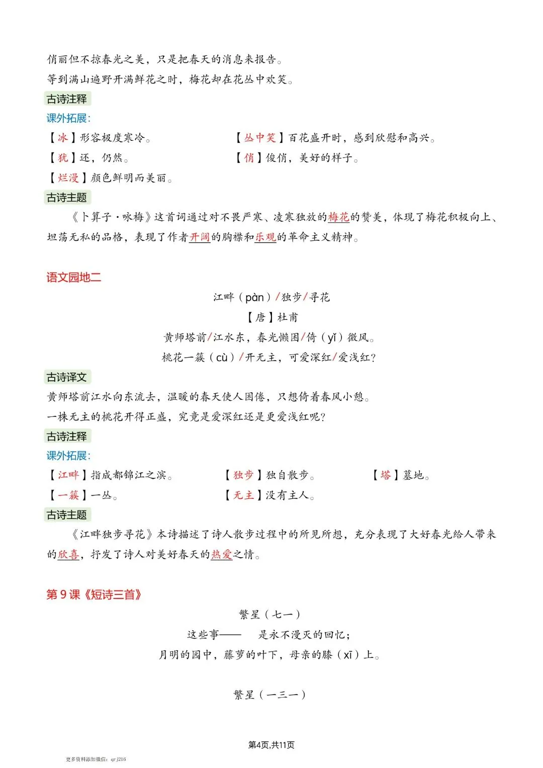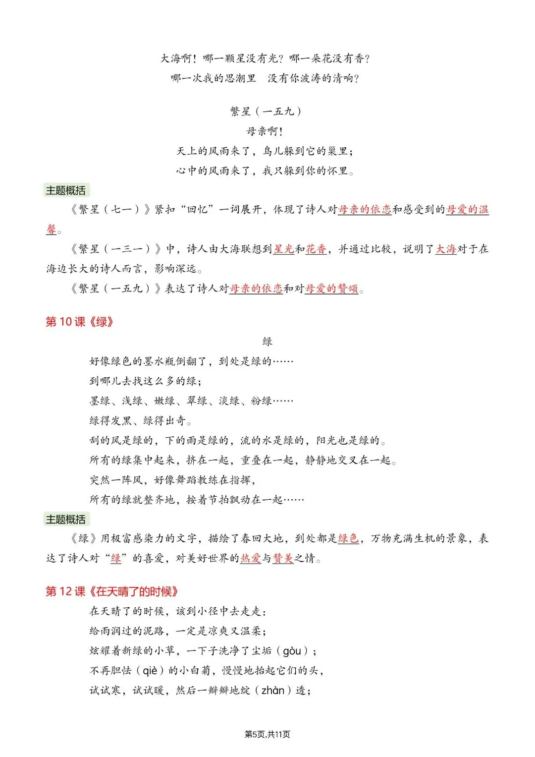26春四年级下册人教部编版语文《全册重点课文必背内容汇总》完整版电子版可打印