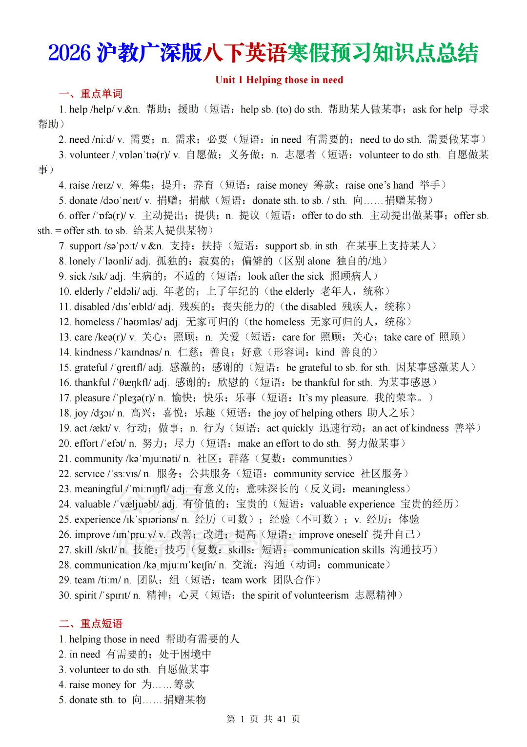 【寒假预习】2026新沪教广深版八年级下册英语电子课本全册知识点总结