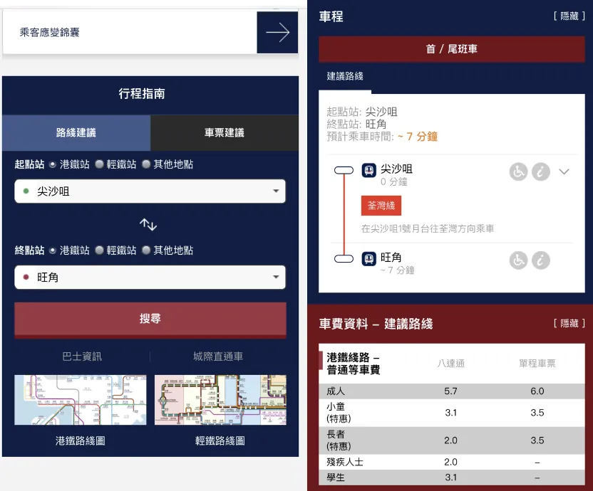 想知道坐港铁前往目的地的路线、距离和车费,只用在MTR上输入起点、终点,就能马上对一切了如指掌!