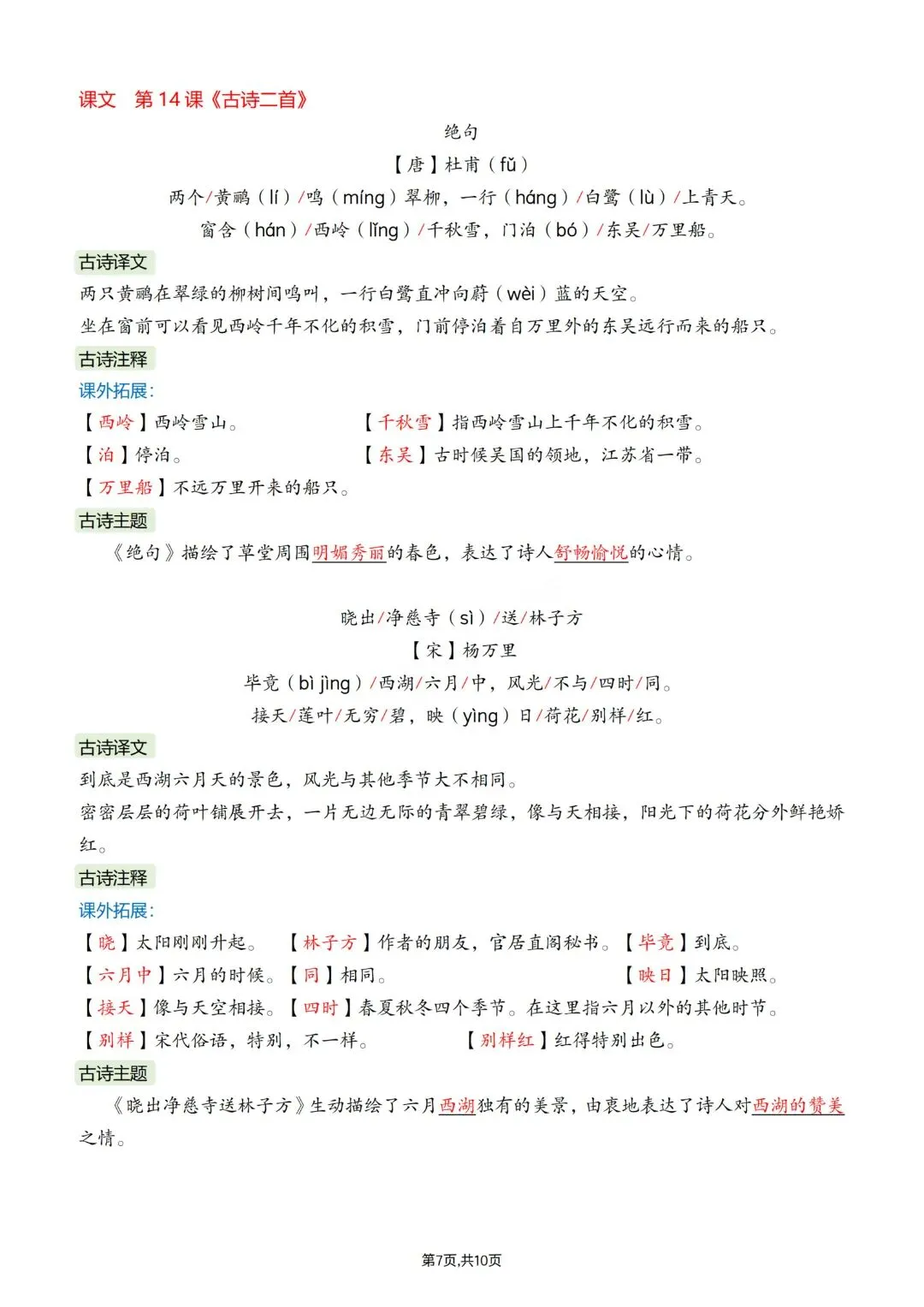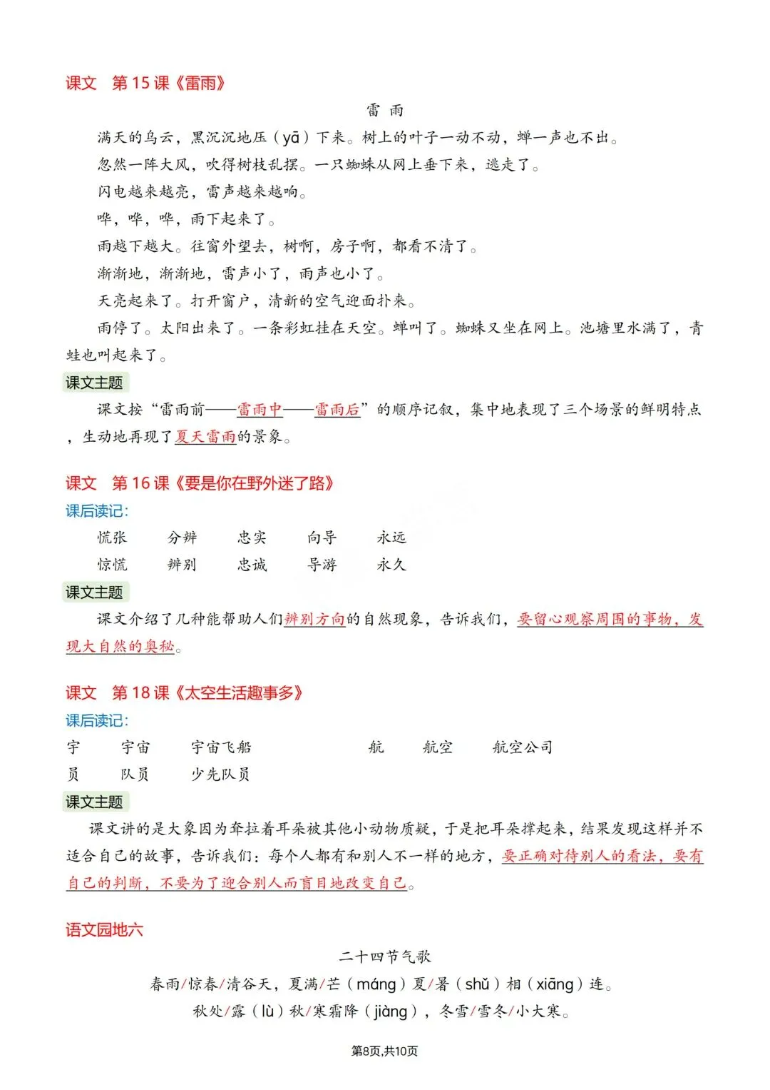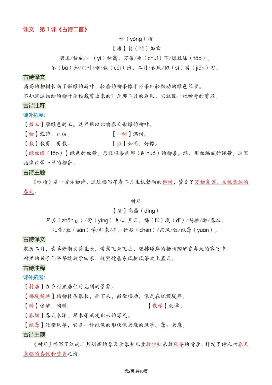26春二年级下册人教部编版语文《全册重点课文必背内容汇总》完整版电子版可打印