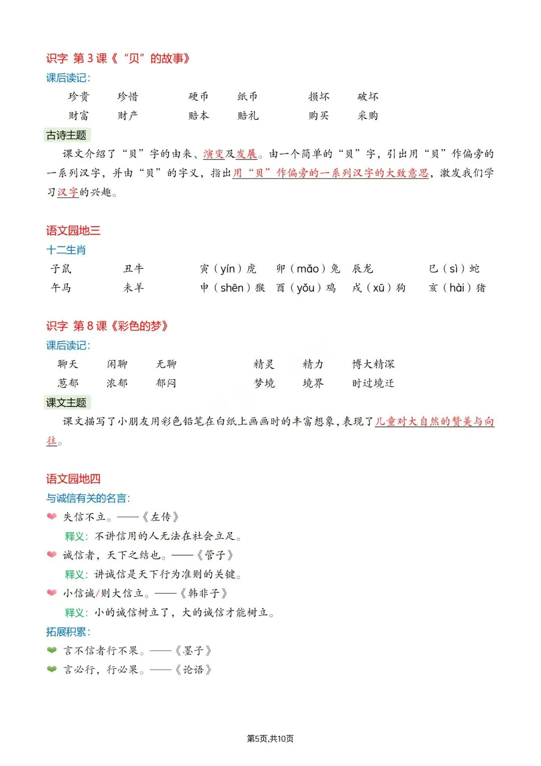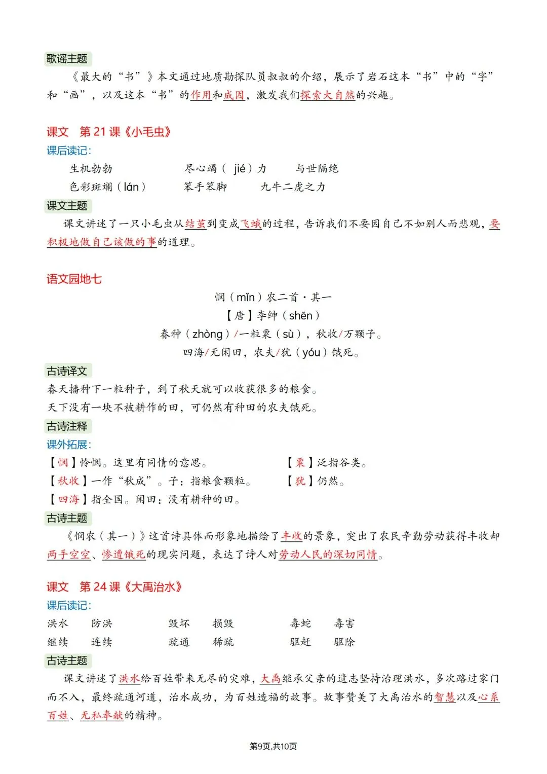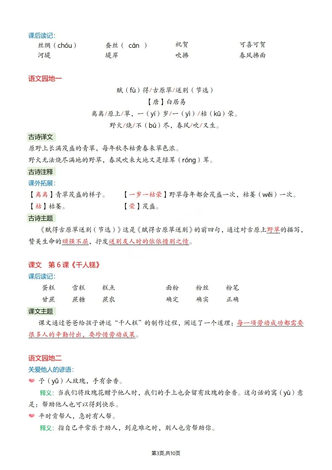 26春二年级下册人教部编版语文《全册重点课文必背内容汇总》完整版电子版可打印