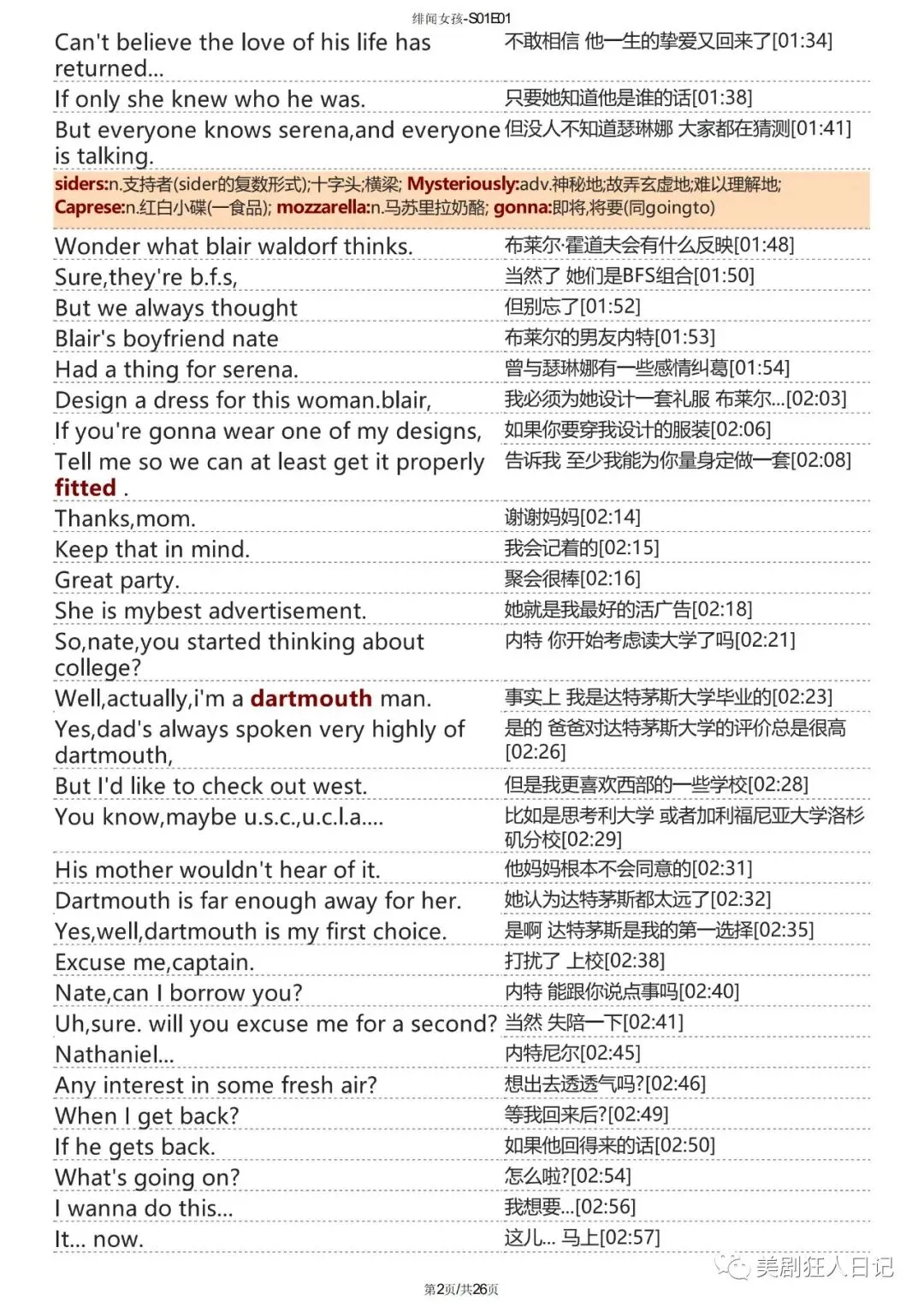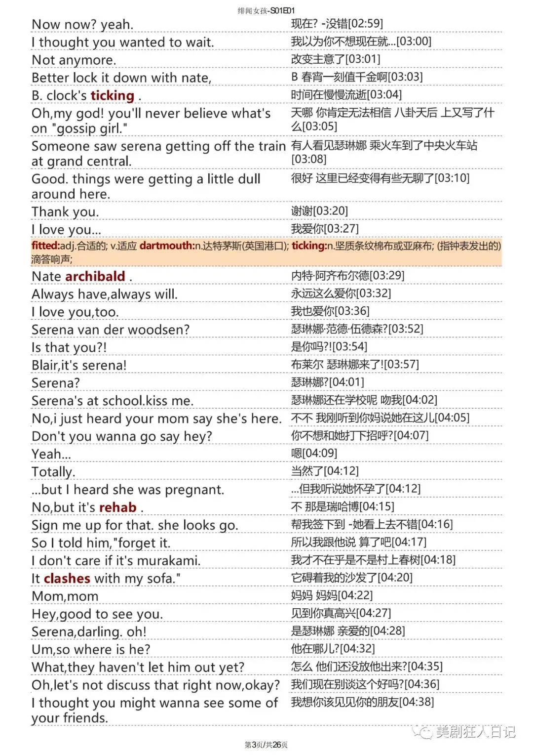 绯闻女孩台词本下载pdf(双语精排版)全6季+mp3+单词注释