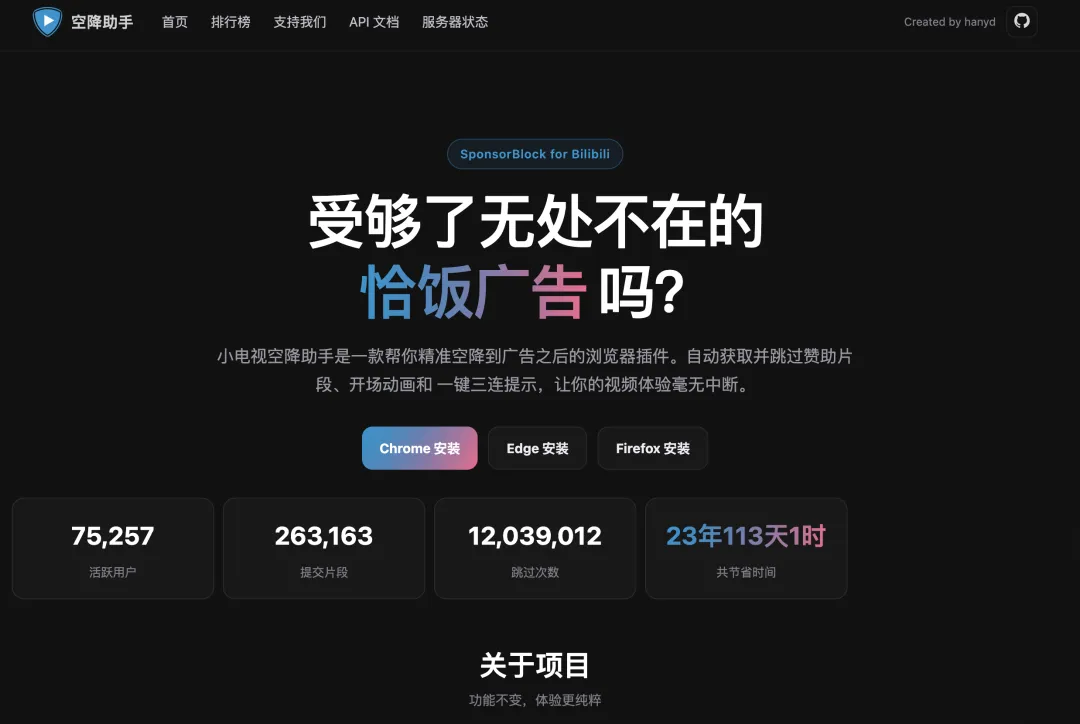这个插件对重度 B 站用户很友好。 像恰饭段、片头片尾、一键三连提示这类片段,能自动跳过。