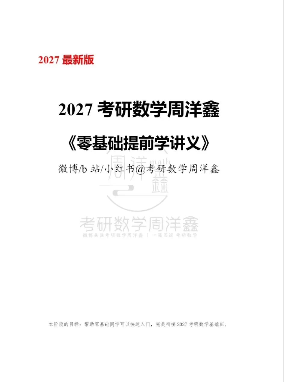 27考研数学周洋鑫《零基础提前学》电子版讲义及答案+配套课程已经更新,有需要自取,获取方式在下方。