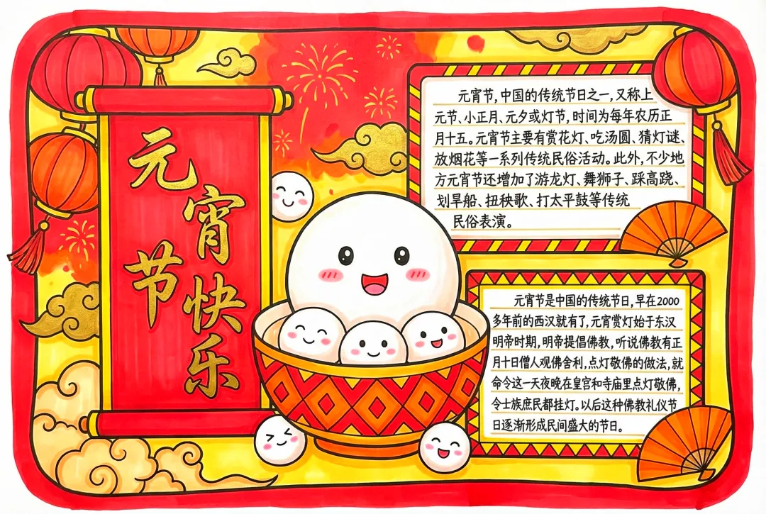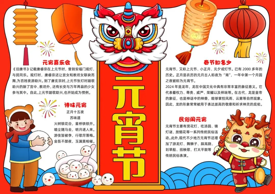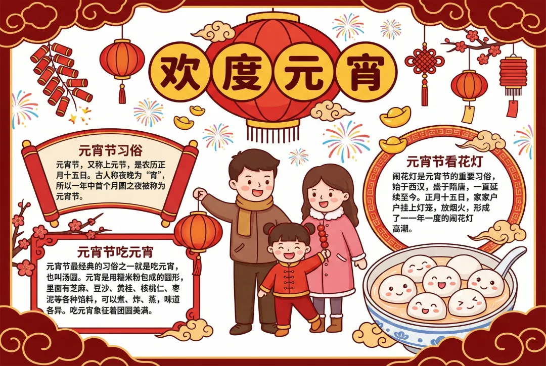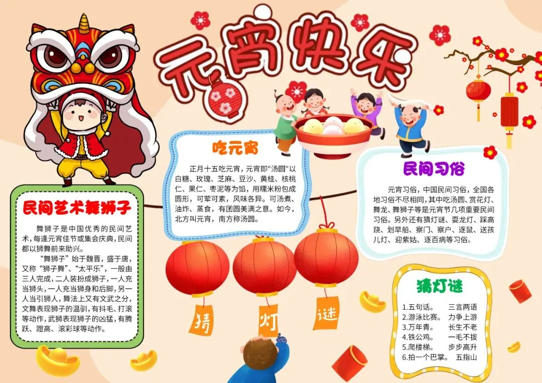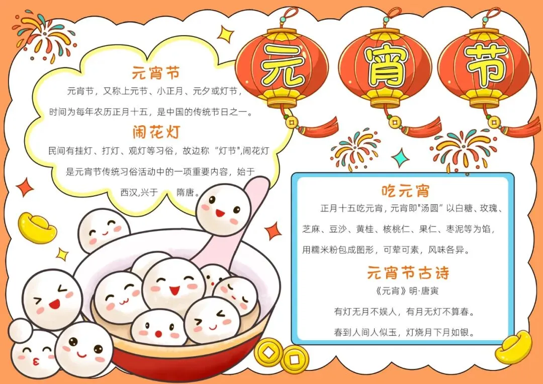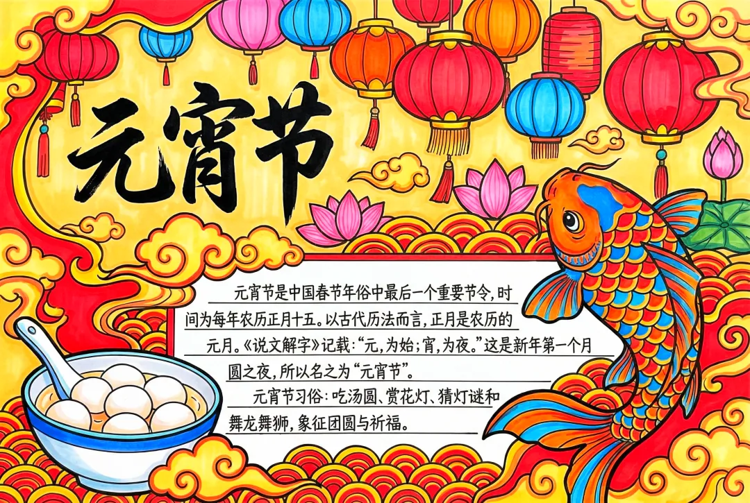 【免费下载】10套元宵节主题手抄报小报模板,26年最新(含线稿)