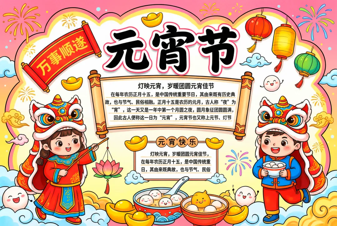 彩色卡通手绘元宵节小报手抄报小学生手抄报